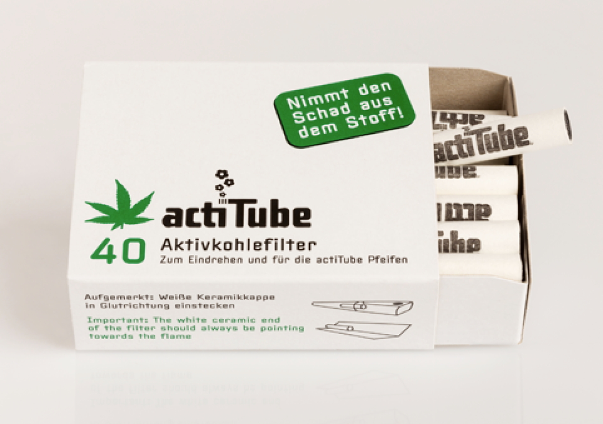 Filtre à charbon actif Actitube. Le charbon actif absorbe une partie des substances indésirables de la fumée tout en préservant le goût. Résultat : une fumée plus douce et moins irritante pour la gorge.