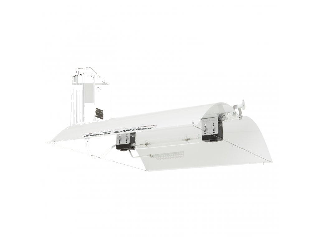 Kit complet Adjust-a-Wing Hellion 600-750W – ballast dimmable + réflecteur Defender + ampoule DE, jusqu’à 1480 µmol/s et 108 000 lm.