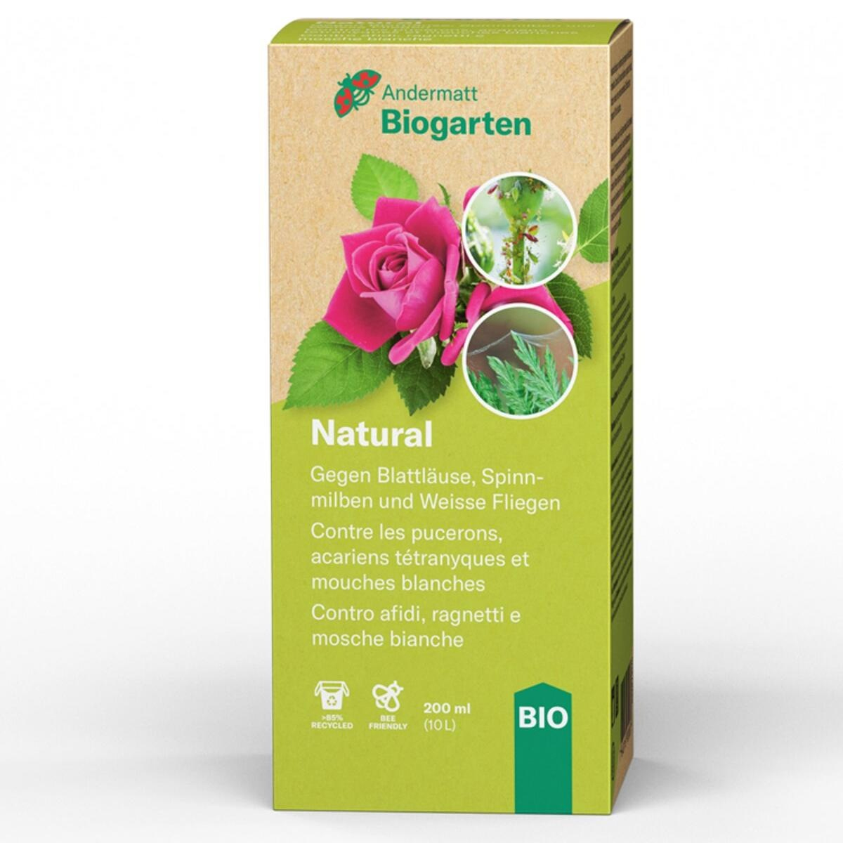 L’Andermatt Natural est un insecticide de contact à base de pyrèthre naturel (extrait de chrysanthème). Il agit rapidement contre pucerons, thrips, aleurodes, cicadelles et autres insectes nuisibles. Homologué bio en Suisse, il se dégrade rapidement sans laisser de résidus nocifs.
