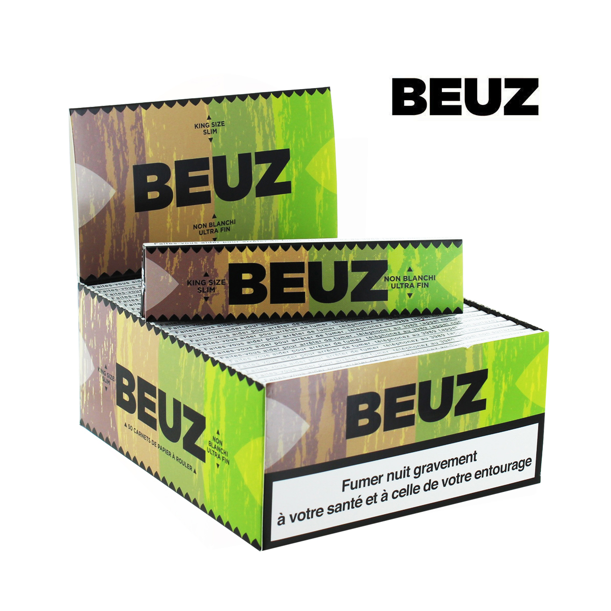 Présentoir de 50 cahiers Beuz Kingsize Slim Brown Unbleached. Beuz est une marque française engagée pour l’environnement. Tous les papiers Beuz sont fabriqués sans chlore, avec des matériaux naturels et un packaging éco-responsable. La marque soutient activement des projets de reforestation.