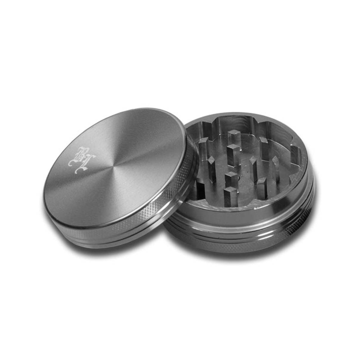 Black Leaf Aluminium Grinder 2 Part Anodized Grey — grinder en aluminium, 2 parties.