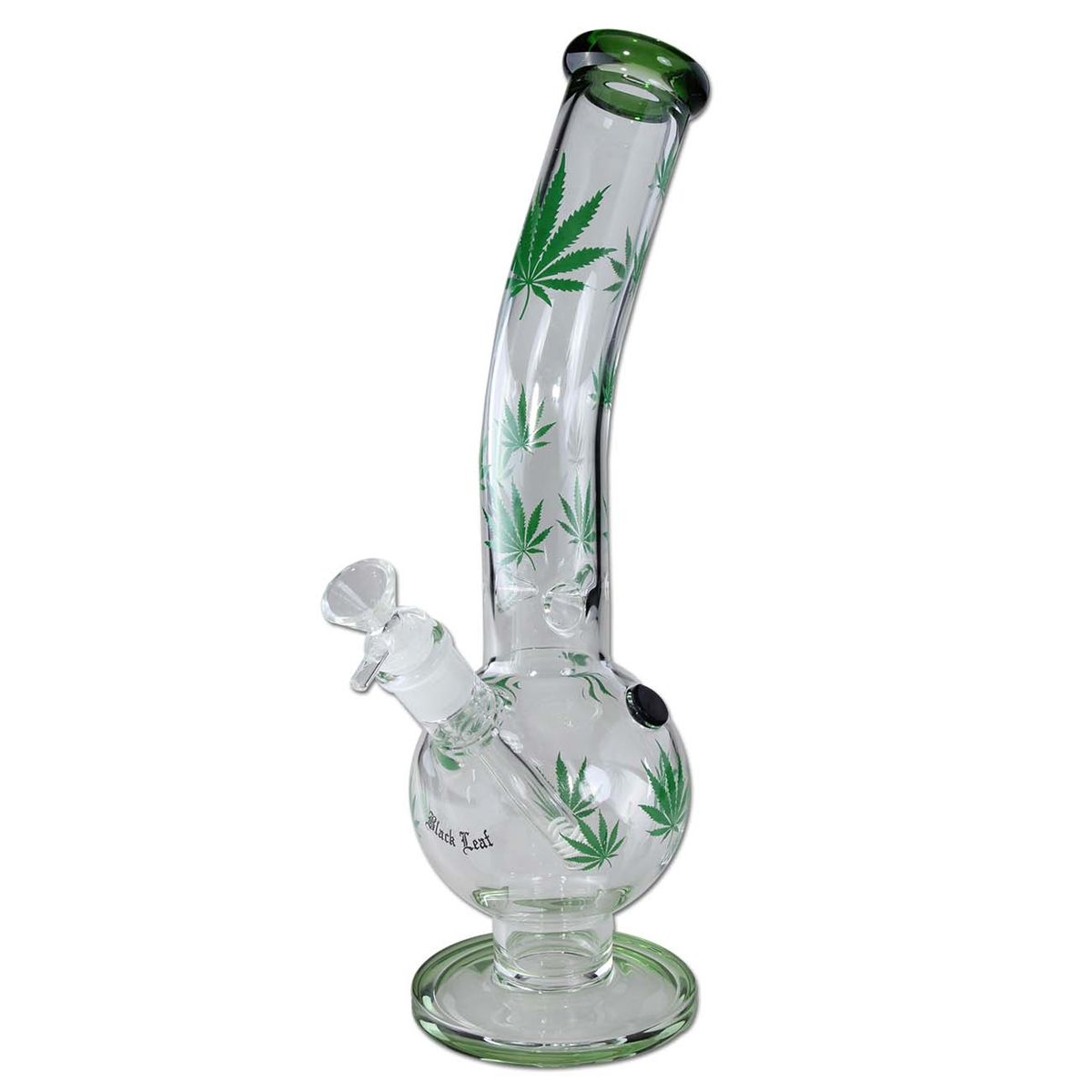 Black Leaf propose un excellent rapport qualité-prix sur tout le spectre du bong en verre : du modèle d’initiation au bong percolé multi-étages. Le Black Leaf Belly Bong avec ice catcher Curved Green Leaves bénéficie d’un verre borosilicate solide et d’une fabrication soignée.