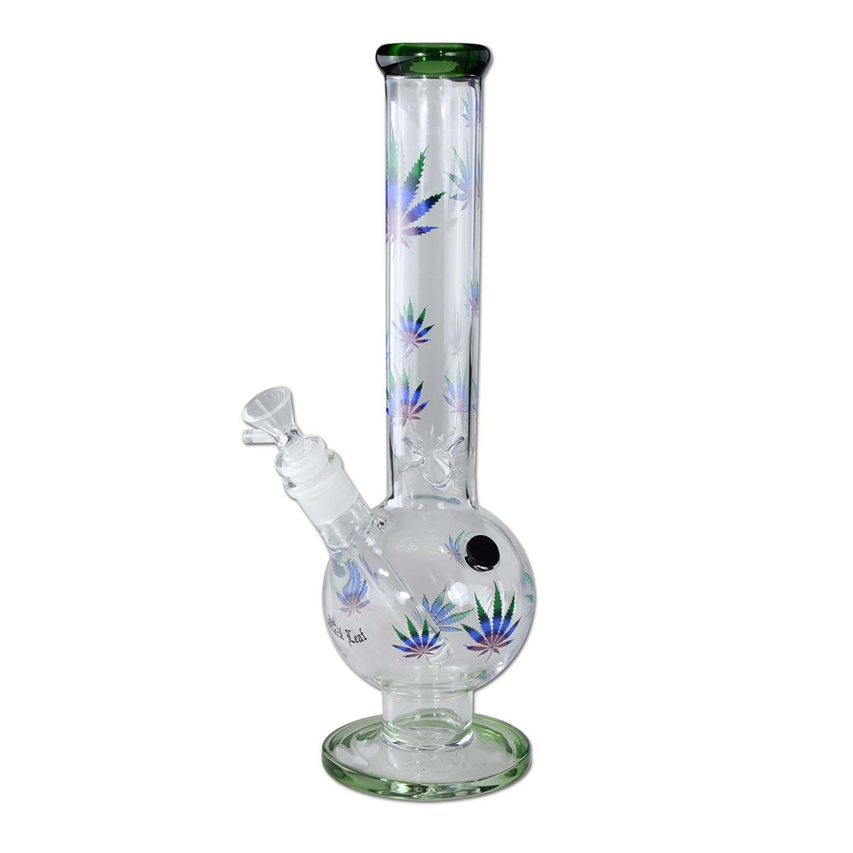 Black Leaf propose un excellent rapport qualité-prix sur tout le spectre du bong en verre : du modèle d’initiation au bong percolé multi-étages. Le Black Leaf Belly Bong avec ice catcher Green Purple Leaves bénéficie d’un verre borosilicate solide et d’une fabrication soignée.