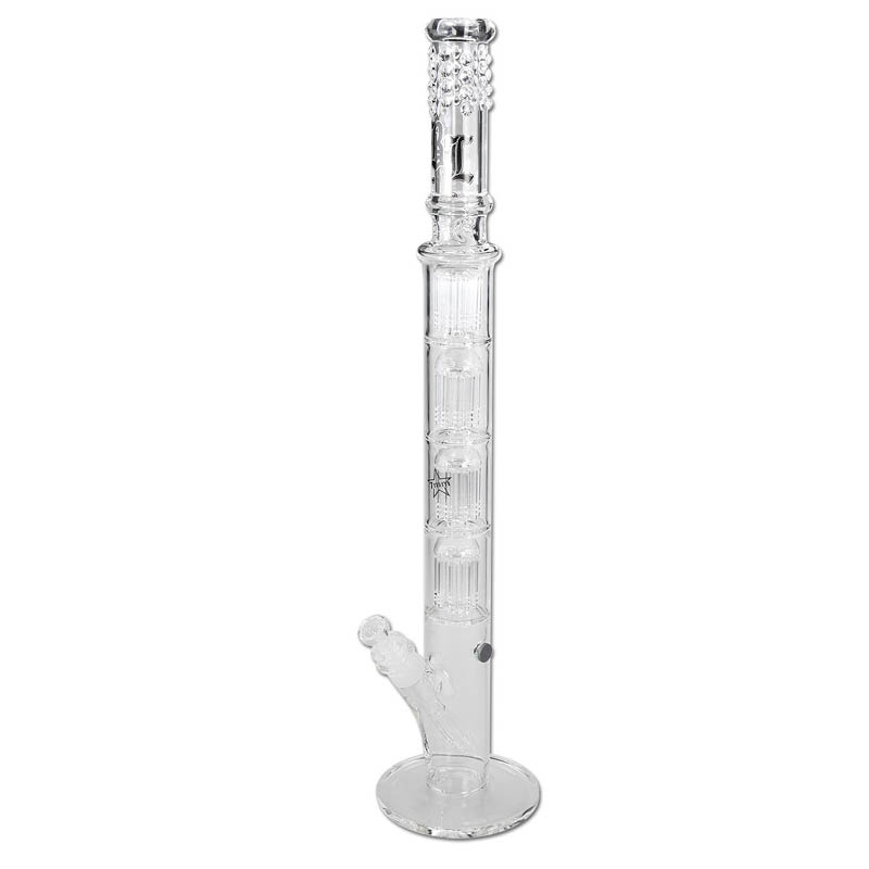 Black Leaf propose un excellent rapport qualité-prix sur tout le spectre du bong en verre : du modèle d’initiation au bong percolé multi-étages. Le Black Leaf Mr Bombastic Bong avec ice catcher 4×10-Arm Perco arbre 79cm bénéficie d’un verre borosilicate solide et d’une fabrication soignée.