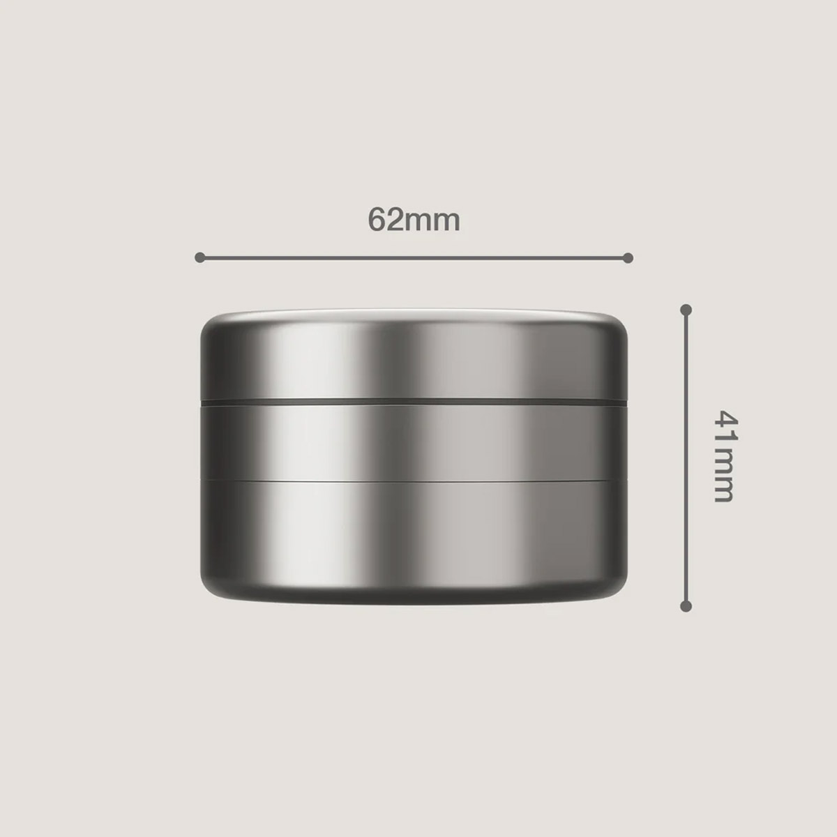 Bloomint Titan Grinder 3Parts 62mm — L’élégance suisse-autrichienne en titane pur. Bloomint signe ici une pièce d’exception alliant pureté du matériau, esthétique minimaliste et performance de broyage. 62mm de diamètre pour une capacité généreuse, 300g de titane massif.