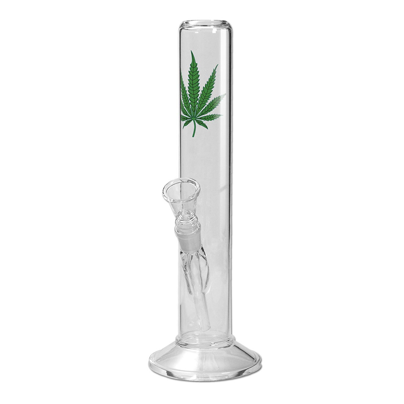 Breitseite Cylindre Bong en verre feuille de chanvre 40cm