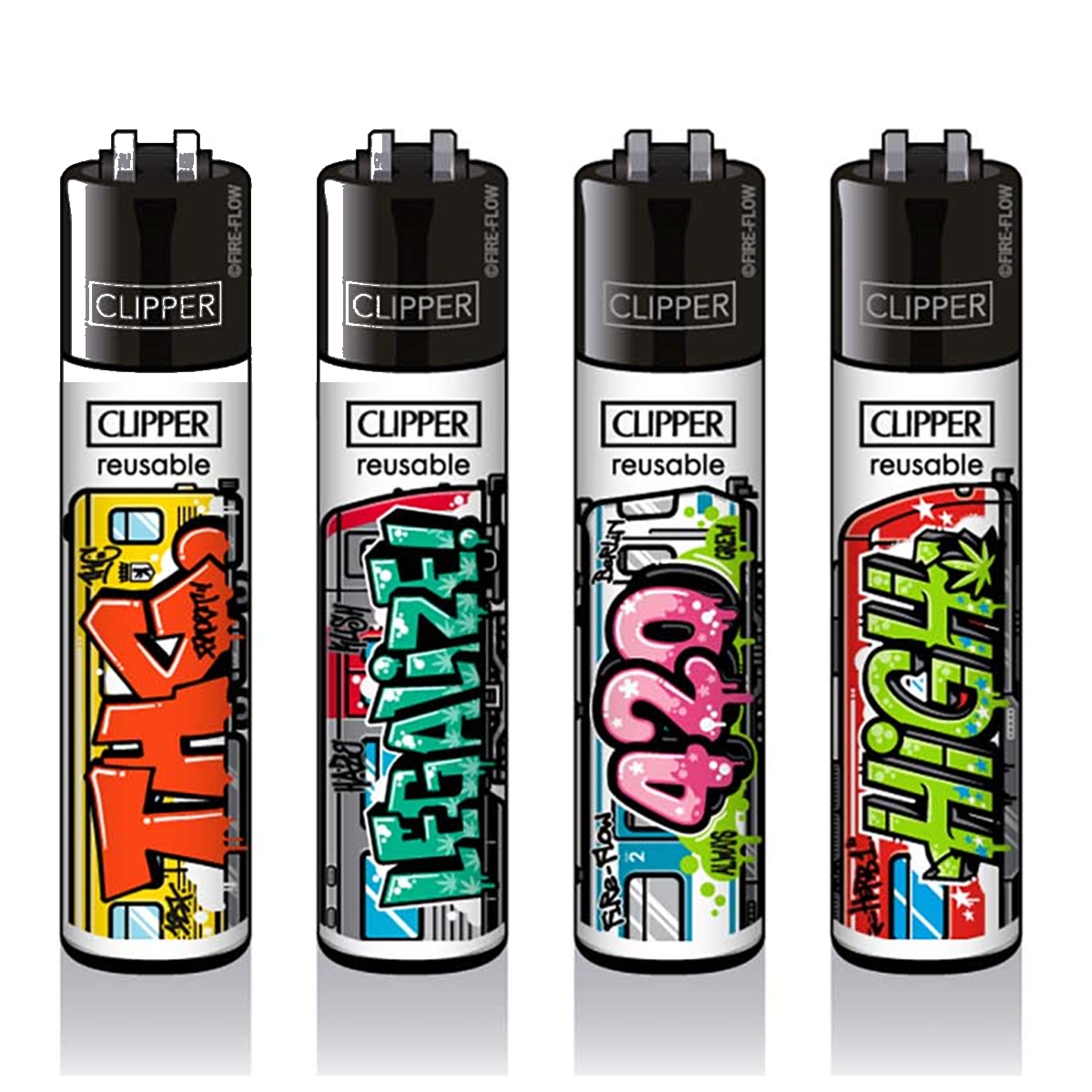 Les Clipper sont vendus par lot de 4 designs différents — chaque lot est une série thématique (motif, couleur, slogan). Parfait pour en offrir, alterner selon l’humeur, ou ne jamais se retrouver sans feu.