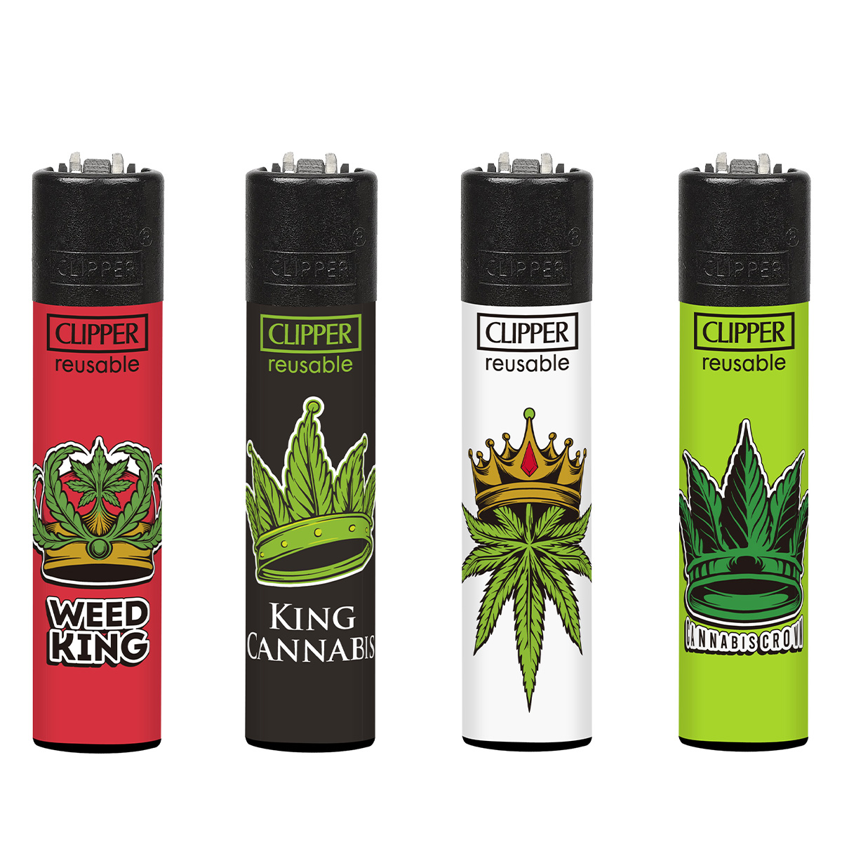 Les Clipper sont vendus par lot de 4 designs différents — chaque lot est une série thématique (motif, couleur, slogan). Parfait pour en offrir, alterner selon l’humeur, ou ne jamais se retrouver sans feu.