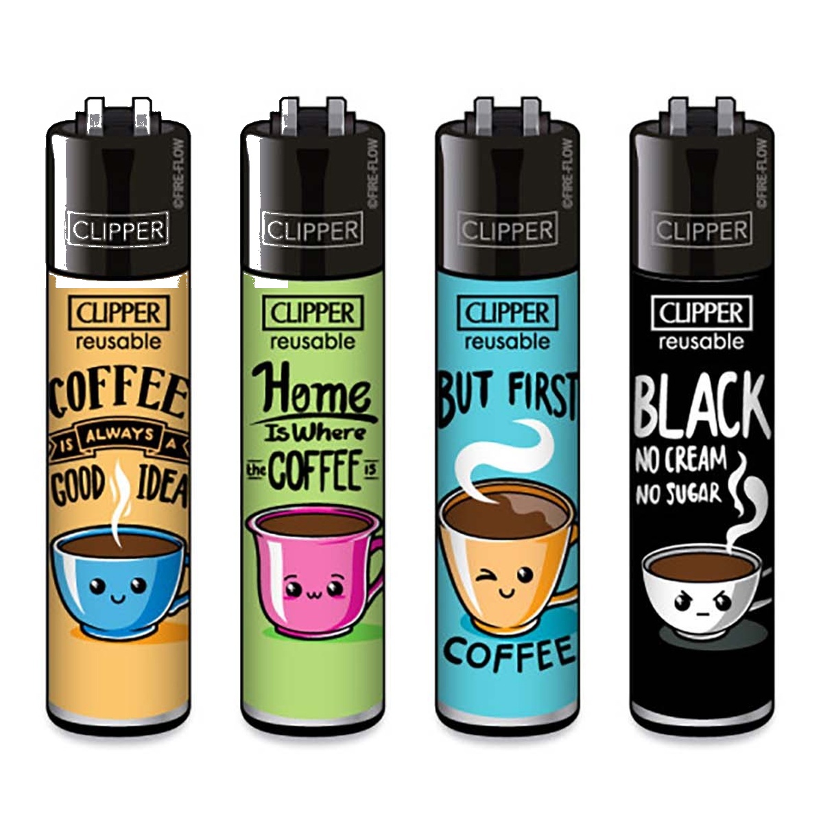 Les Clipper sont vendus par lot de 4 designs différents — chaque lot est une série thématique (motif, couleur, slogan). Parfait pour en offrir, alterner selon l’humeur, ou ne jamais se retrouver sans feu.