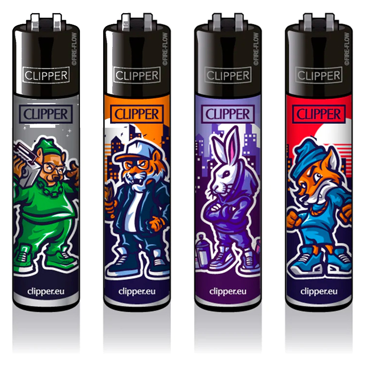Clipper • Lot de 4 — Lot de 4 briquets Clipper aux designs exclusifs — rechargeables, pierre remplaçable, icône espagnole depuis 1959.