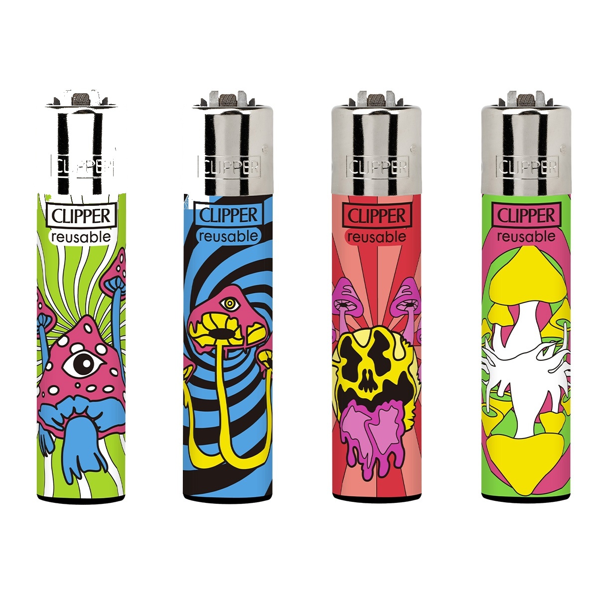 Les Clipper sont vendus par lot de 4 designs différents — chaque lot est une série thématique (motif, couleur, slogan). Parfait pour en offrir, alterner selon l’humeur, ou ne jamais se retrouver sans feu.