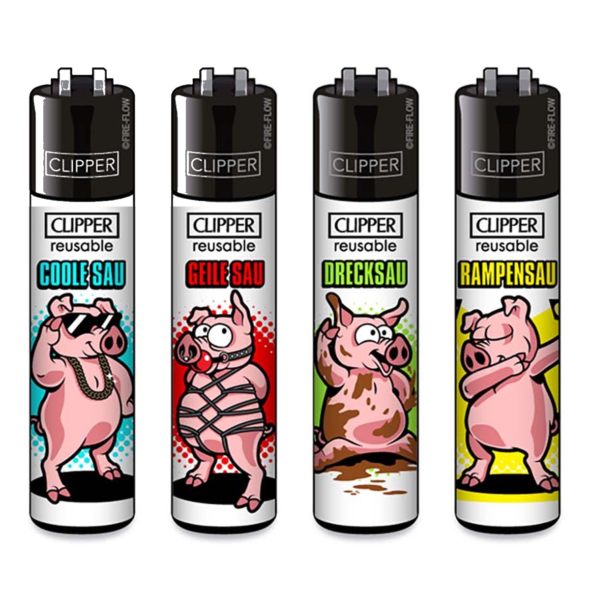 Les Clipper sont vendus par lot de 4 designs différents — chaque lot est une série thématique (motif, couleur, slogan). Parfait pour en offrir, alterner selon l’humeur, ou ne jamais se retrouver sans feu.