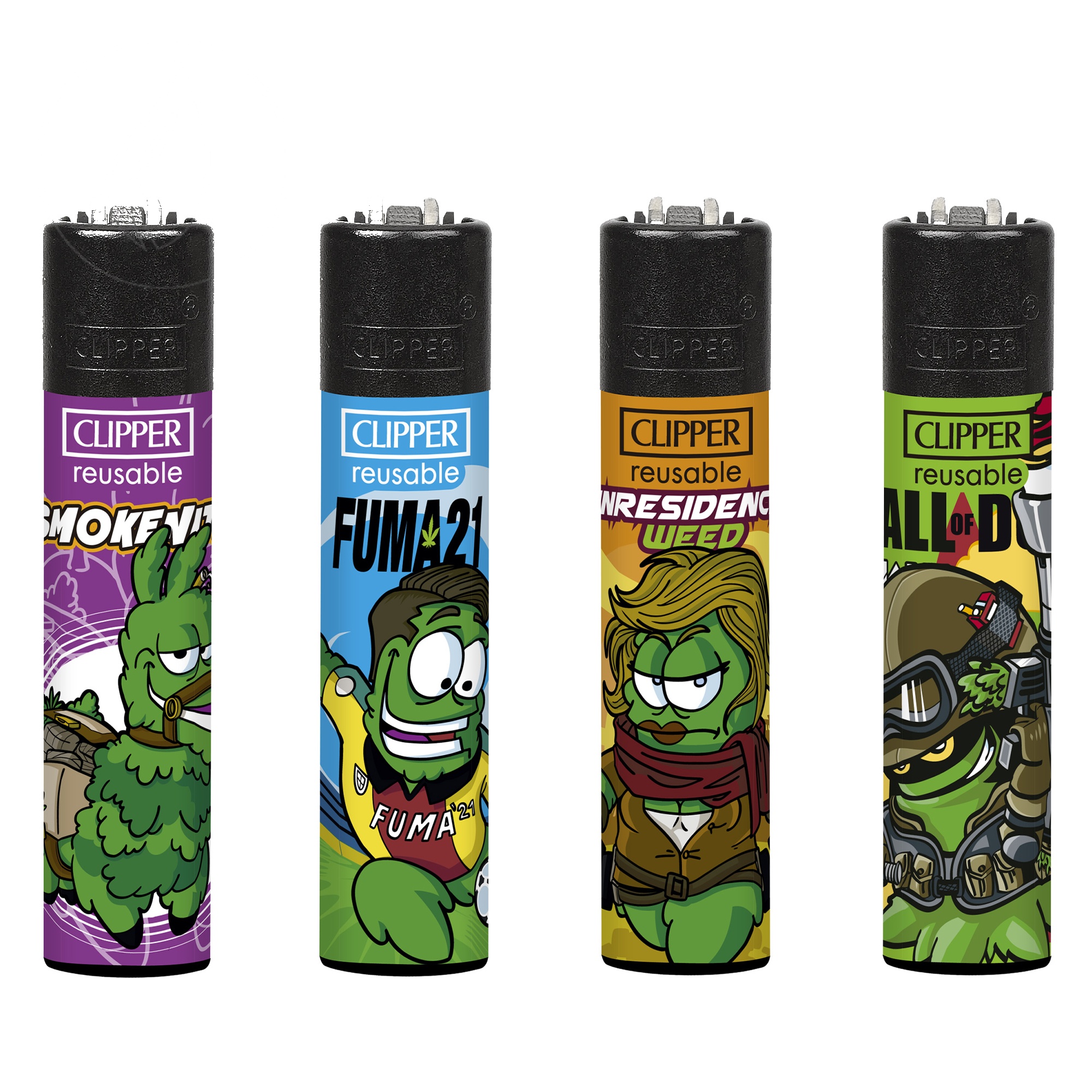 Les Clipper sont vendus par lot de 4 designs différents — chaque lot est une série thématique (motif, couleur, slogan). Parfait pour en offrir, alterner selon l’humeur, ou ne jamais se retrouver sans feu.