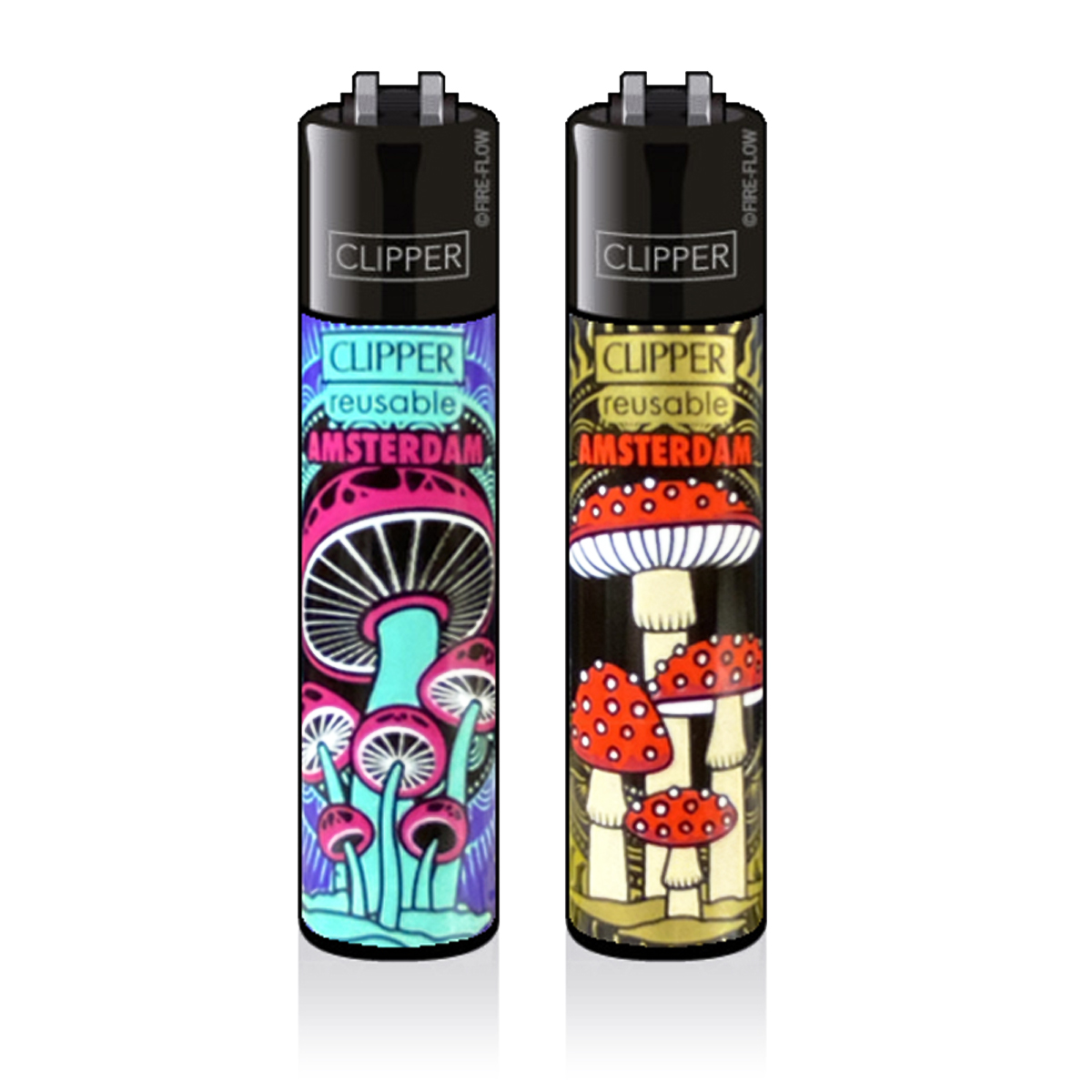 Briquet Clipper Amsterdam Mushrooms 802-803 — Lot de 4 motifs, rechargeable butane