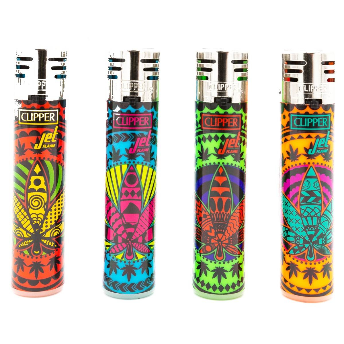 Clipper • Lot de 4 • flamme jet — Lot de 4 briquets Clipper aux designs exclusifs — rechargeables, pierre remplaçable, icône espagnole depuis 1959.