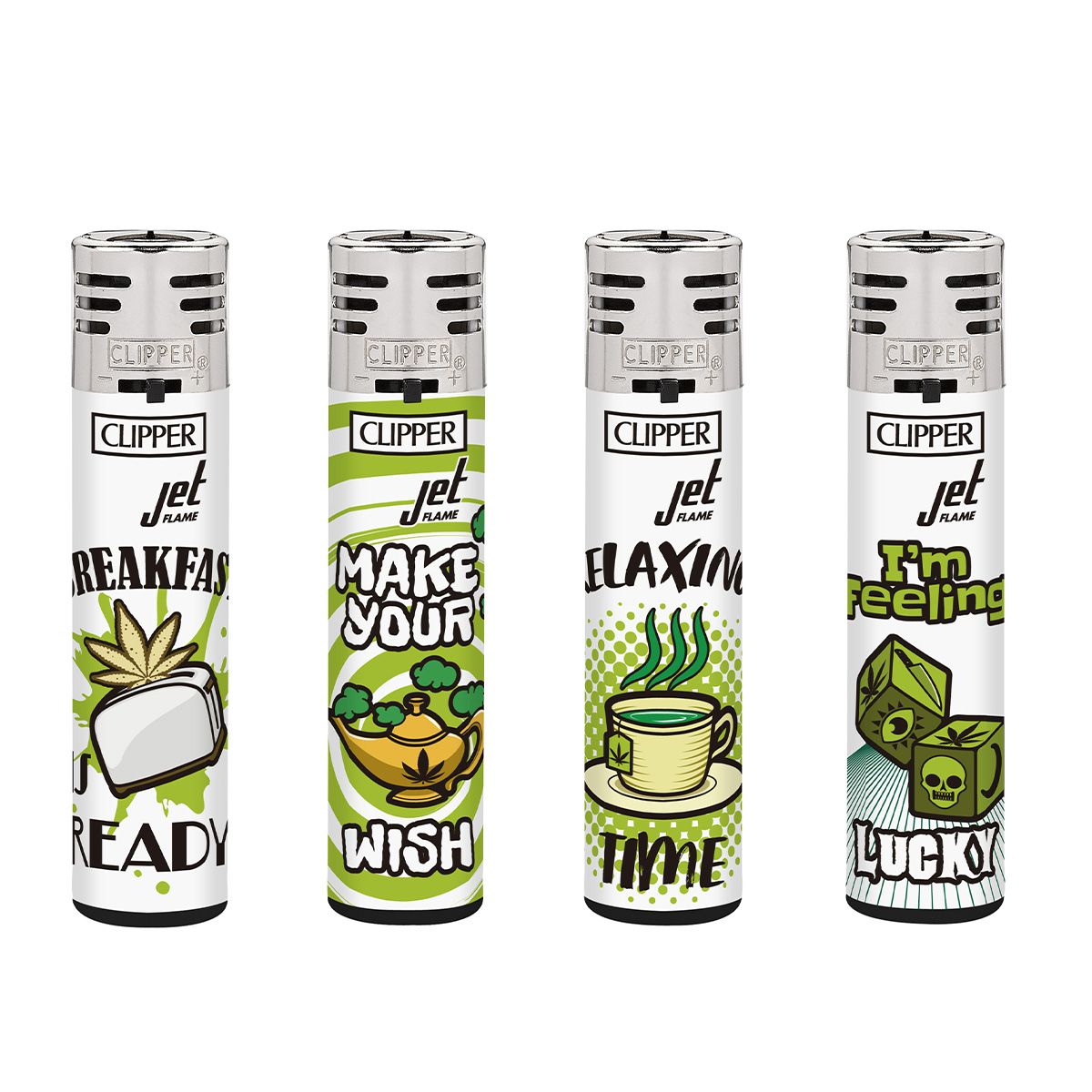 Les Clipper sont vendus par lot de 4 designs différents — chaque lot est une série thématique (motif, couleur, slogan). Parfait pour en offrir, alterner selon l’humeur, ou ne jamais se retrouver sans feu.