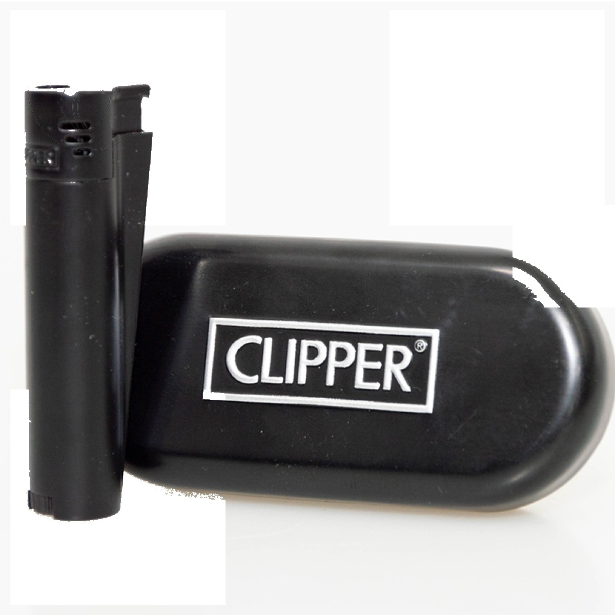 Briquet Clipper en boîtier métal premium. L’intérieur est le mécanisme Clipper classique (rechargeable, pierre remplaçable), habillé d’un boîtier en métal qui lui donne un toucher plus noble et une tenue prolongée.