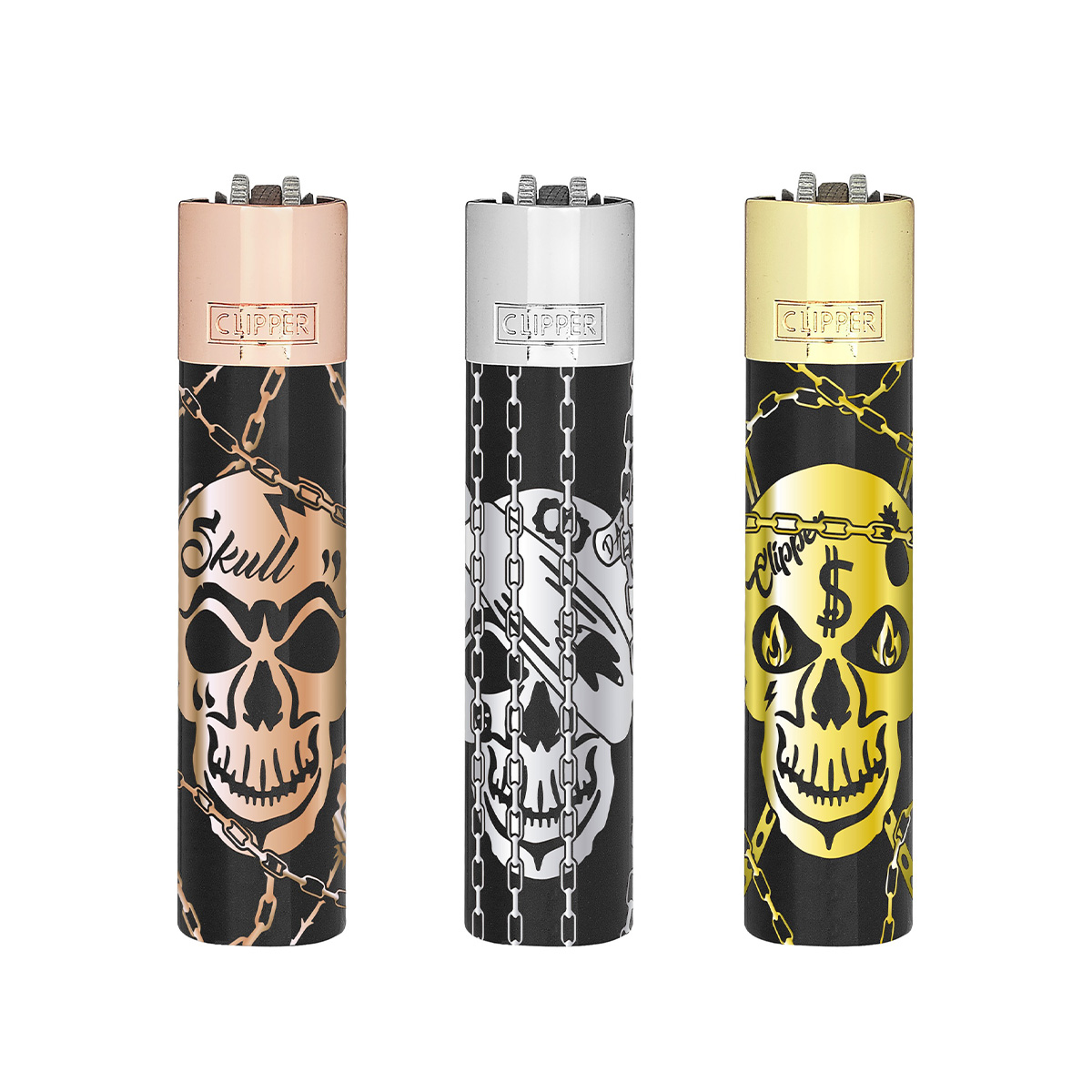 Briquet Clipper Metal Deadly Chains (coloris assorti). — Métal premium rechargeable