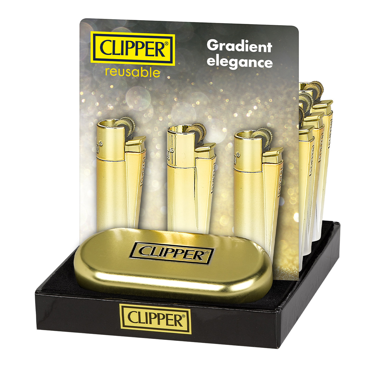 Briquet Clipper Metal Gradient Elegance – (coloris assorti) — Métal premium rechargeable