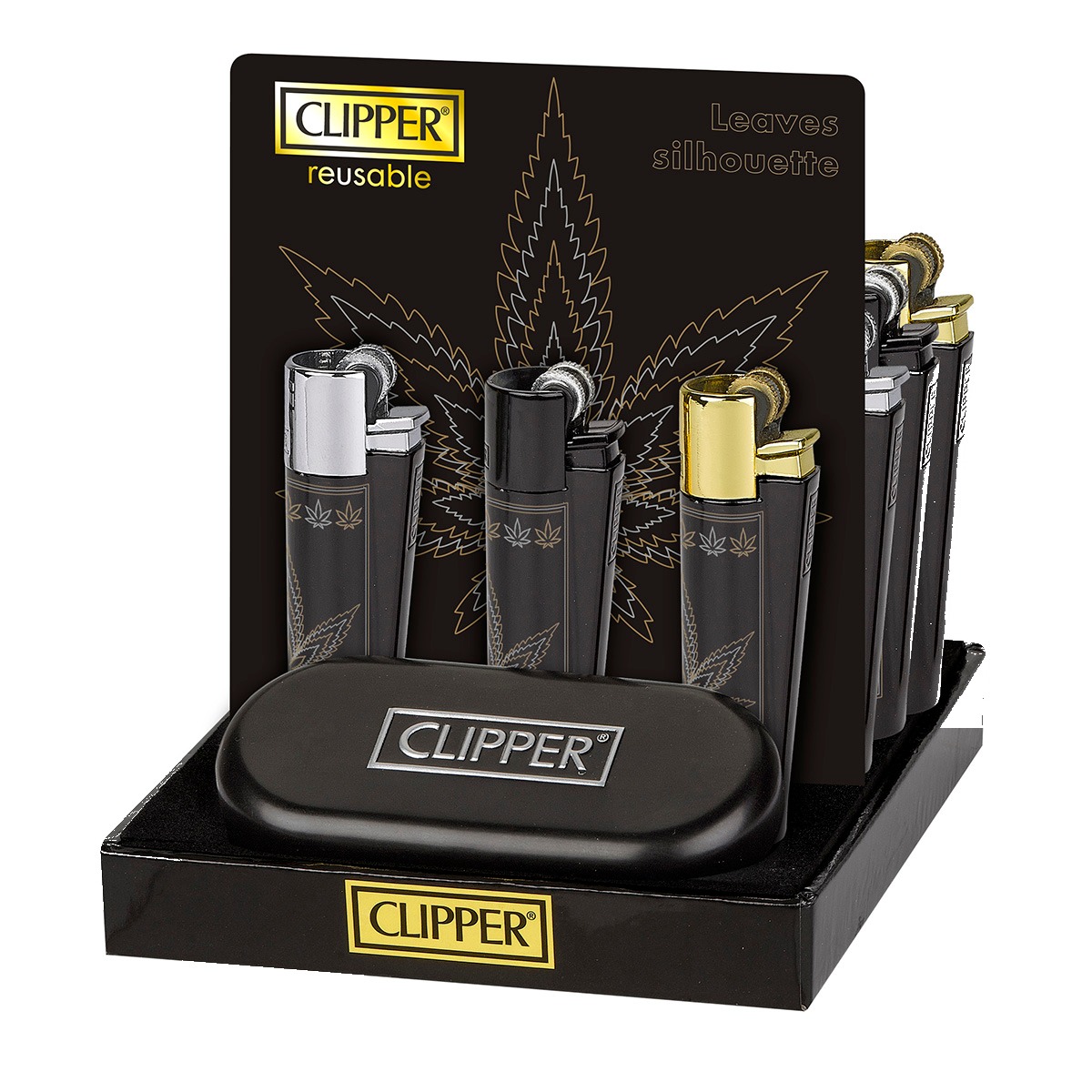 Briquet Clipper Metal Leaves Silhouette – (coloris assorti) — Métal premium rechargeable