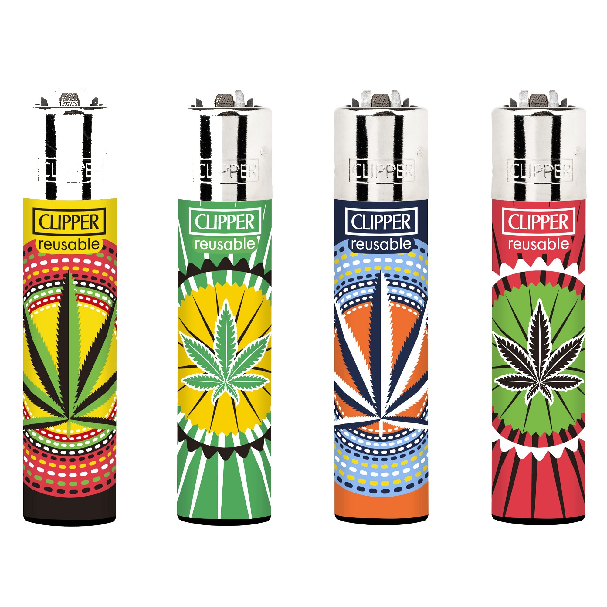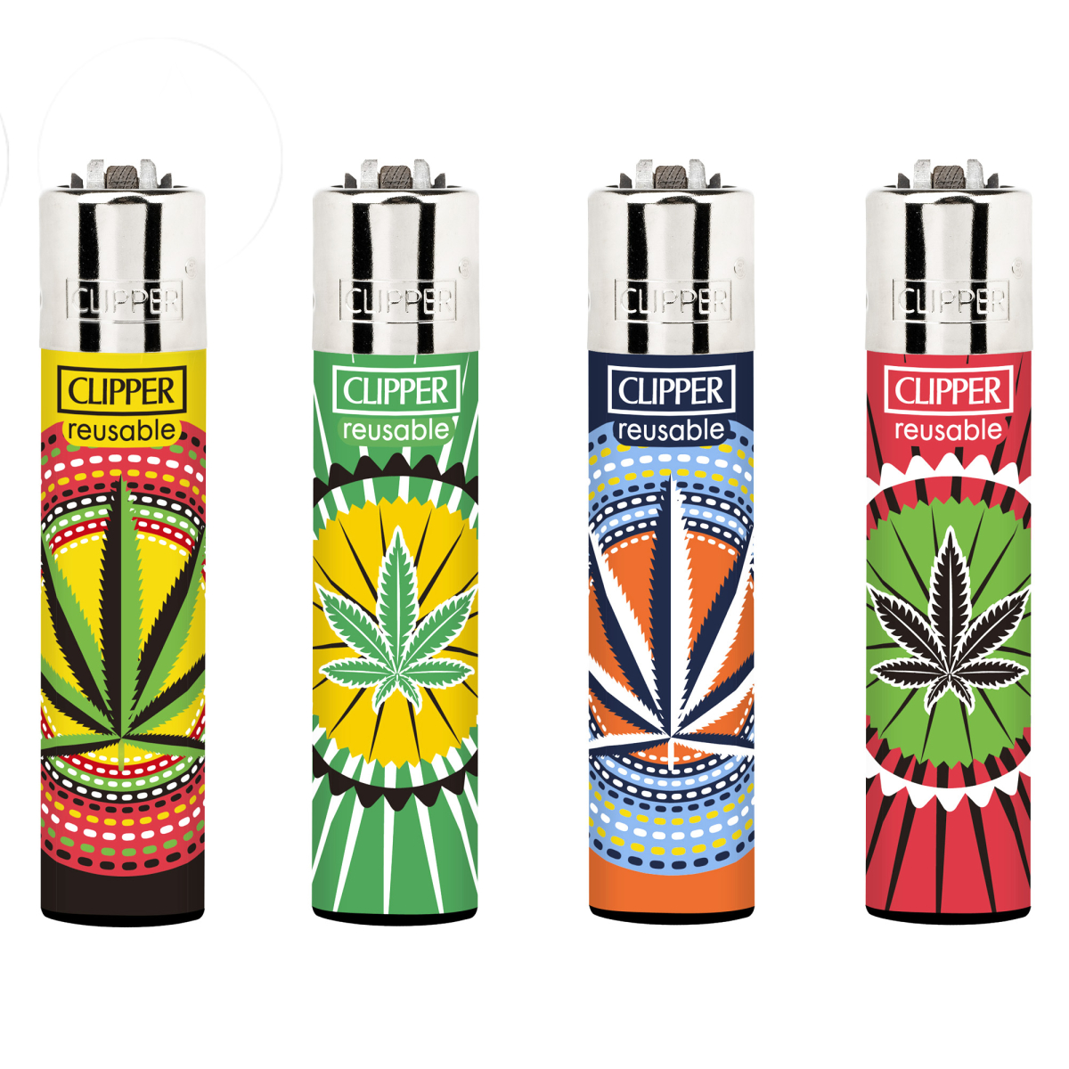Briquet Clipper Weed Circle 620-623 — Lot de 4 motifs, rechargeable butane