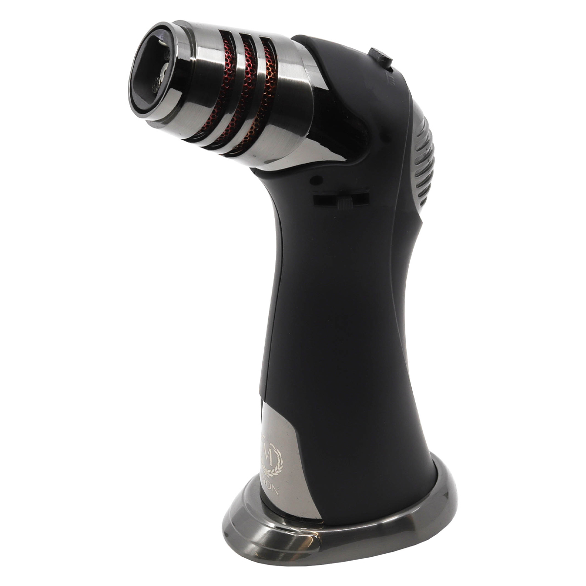Briquet torche à flamme jet, résistant au vent, rechargeable au butane.