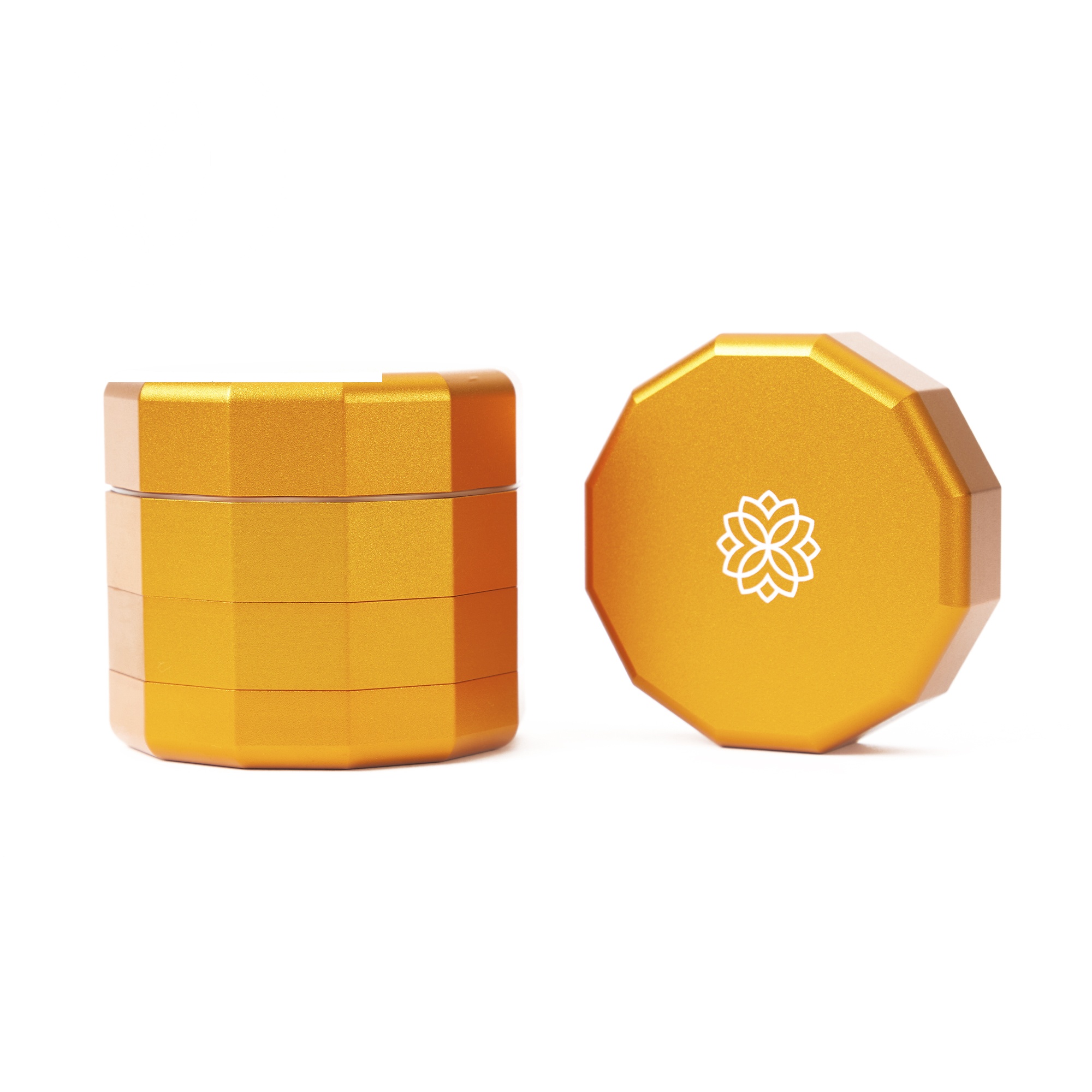 CAPU Herb Grinder Frequent Flyer Gold — CAPU Frequent Flyer : aluminium aéronautique anodisé, design polygonal 12 côtés, assemblage magnétique. Fabrication Allemagne, garantie à vie.
