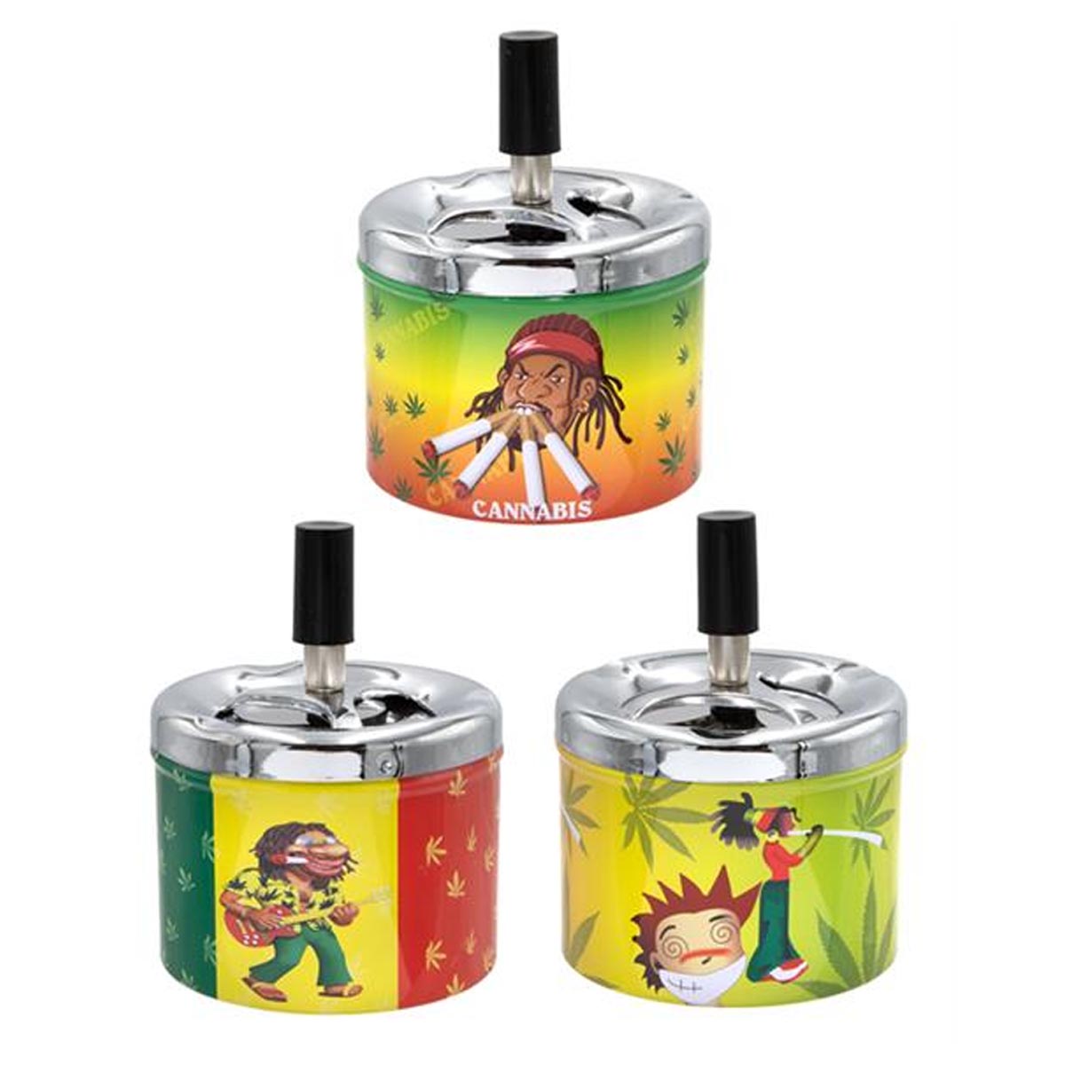 Cendrier – NASS DrehCendrier Métal Push it Rasta 12cm Assort — Cendrier rotatif avec système poussoir.