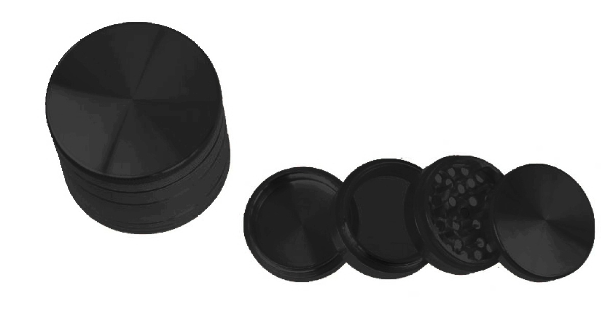 CNC Grinder Black 4 Parts — grinder en aluminium, 4 parties.