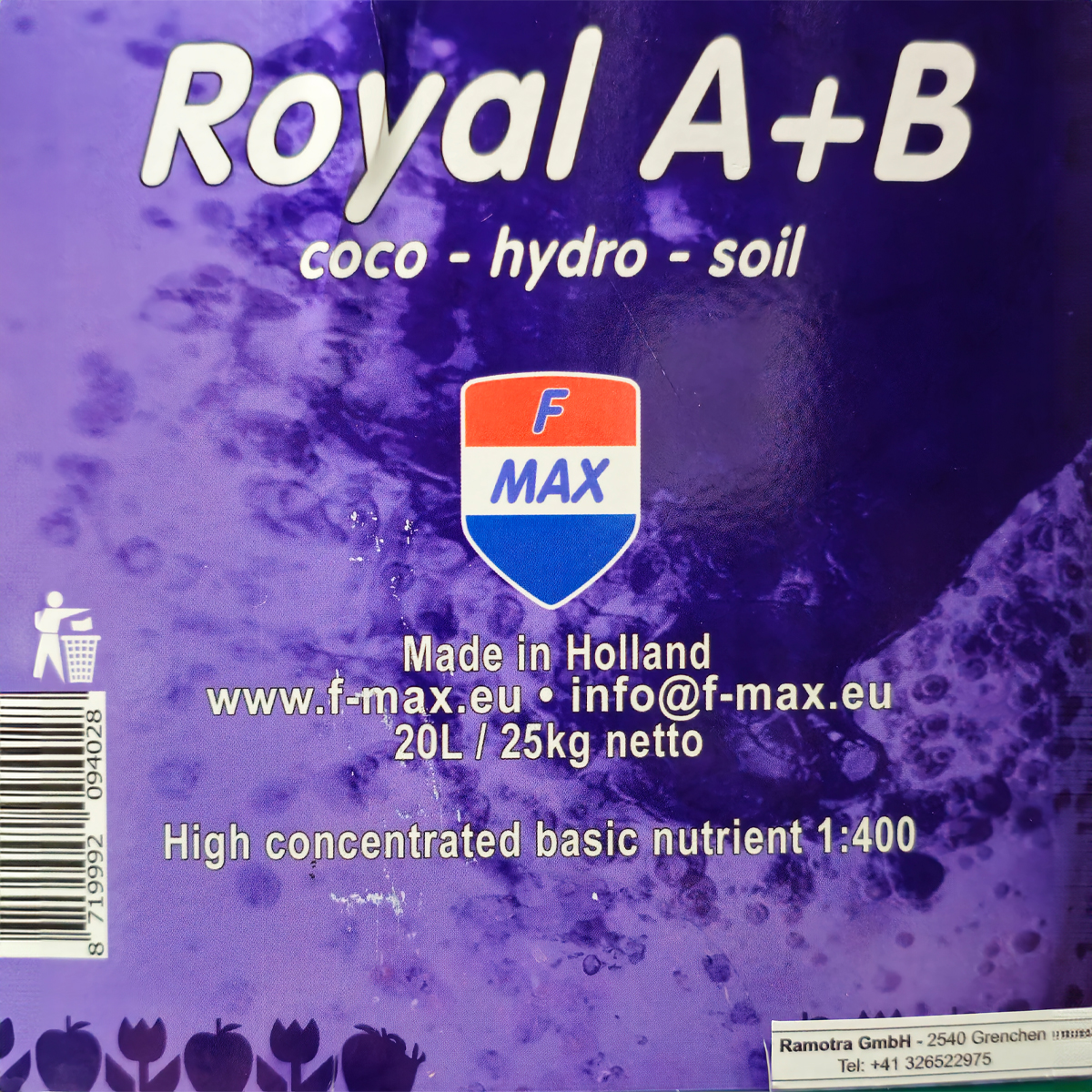 Le F-Max Royal A+B est un système d’engrais bi-composant professionnel conçu pour la culture en coco et hydroponie. Le format A+B sépare les nutriments incompatibles en solution concentrée, garantissant une stabilité parfaite et une disponibilité optimale de chaque élément pour les racines.