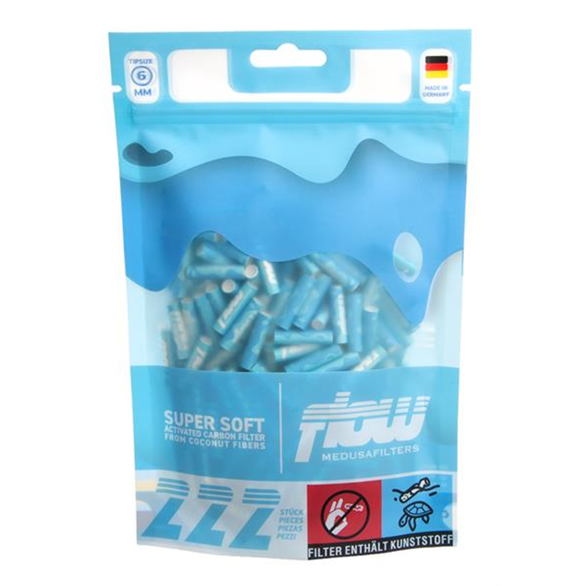 Flow by Medusafilters Supersoft Blue 6mm 222pcs. Disponible chez GrowTech, livraison rapide en Suisse.