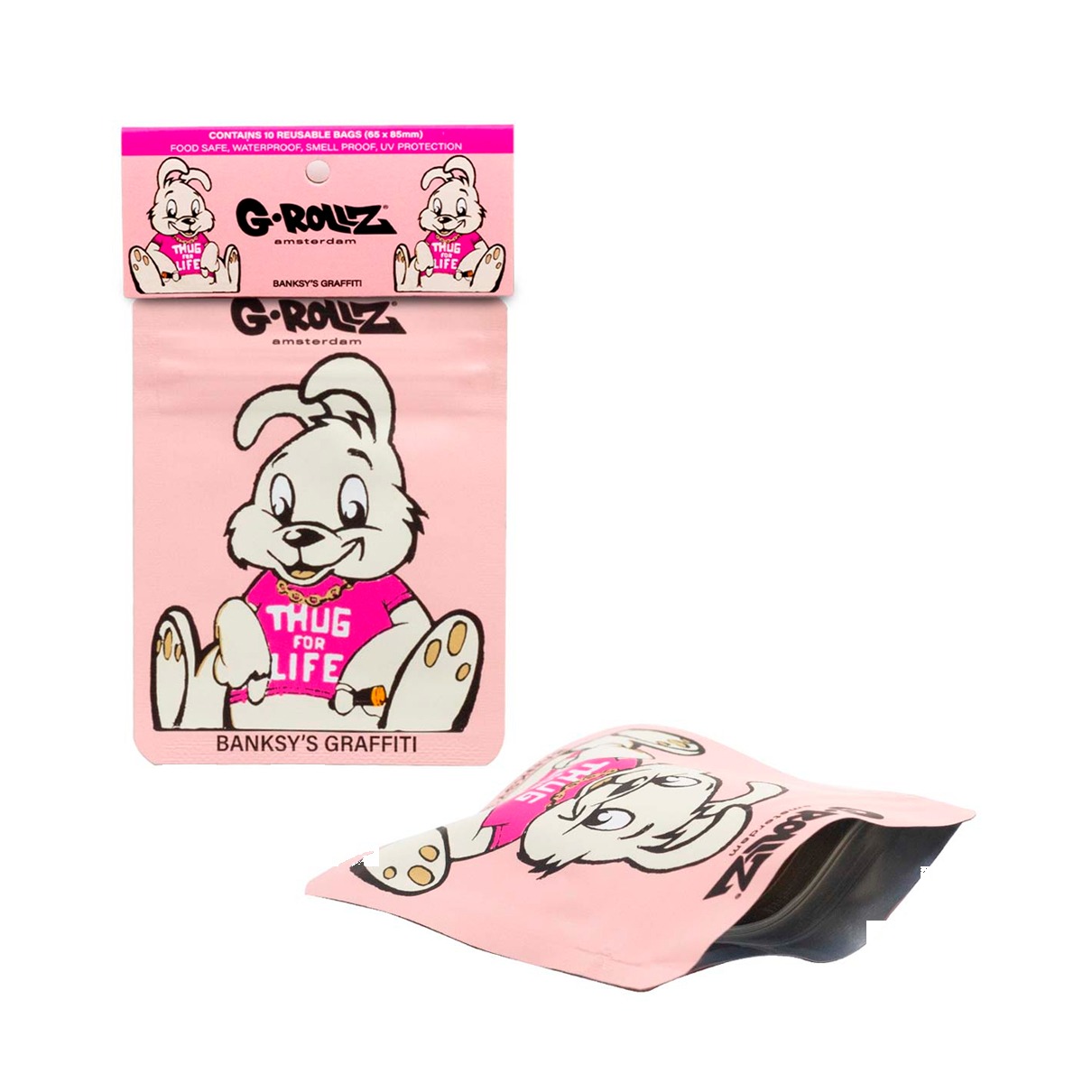 G-Rollz Amsterdam G-Rollz Banksy’s Thug for Life Pink Anti-odeur Bags 65 x 85mm : sachet à fermeture zip pour le portionnage, le transport et la conservation au quotidien. Format 65 × 85 mm.