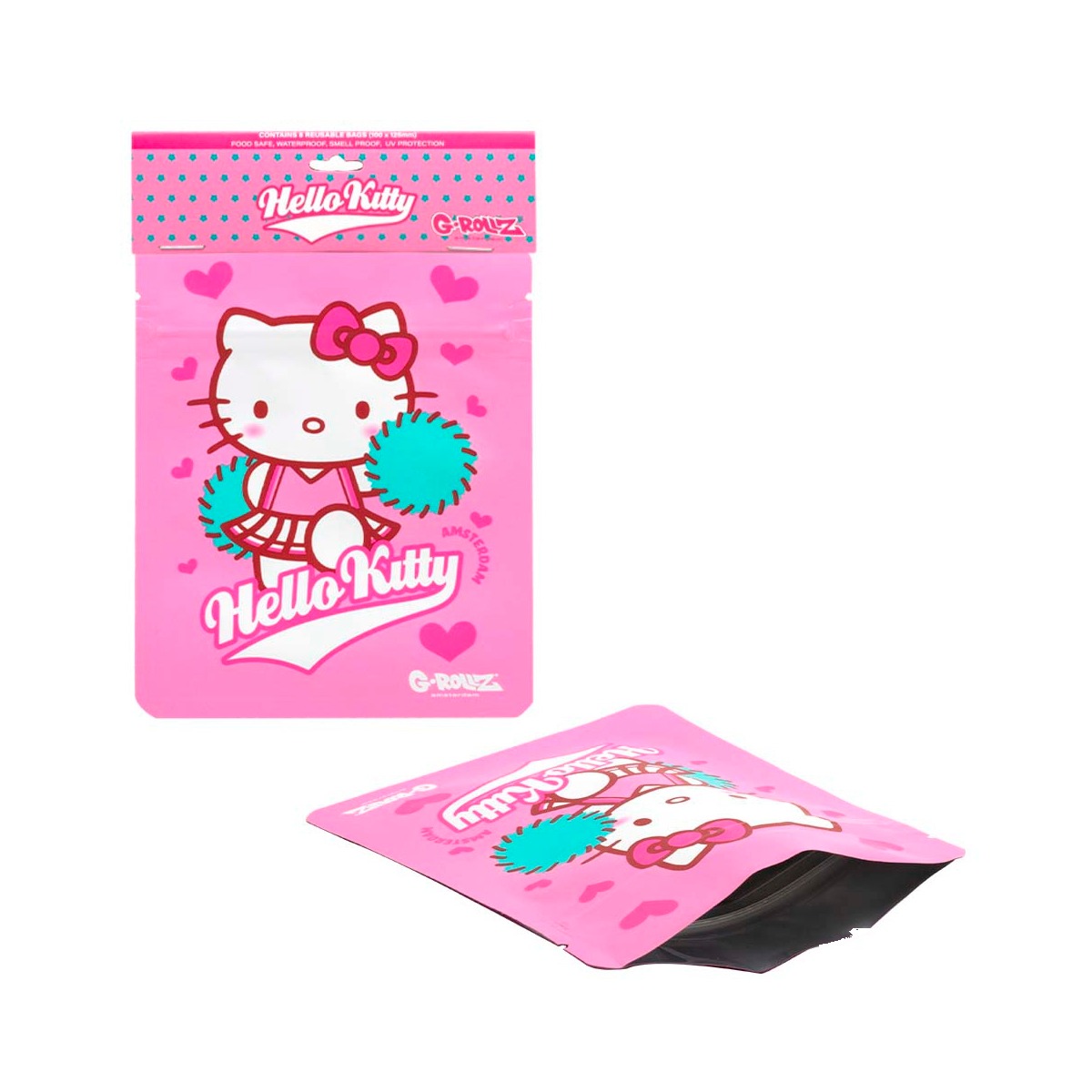 G-Rollz Amsterdam G-Rollz Hello Kitty ‘Cheerleader’ Anti-odeur Bags 100 x 125mm : sachet à fermeture zip pour le portionnage, le transport et la conservation au quotidien. Format 100 × 125 mm.