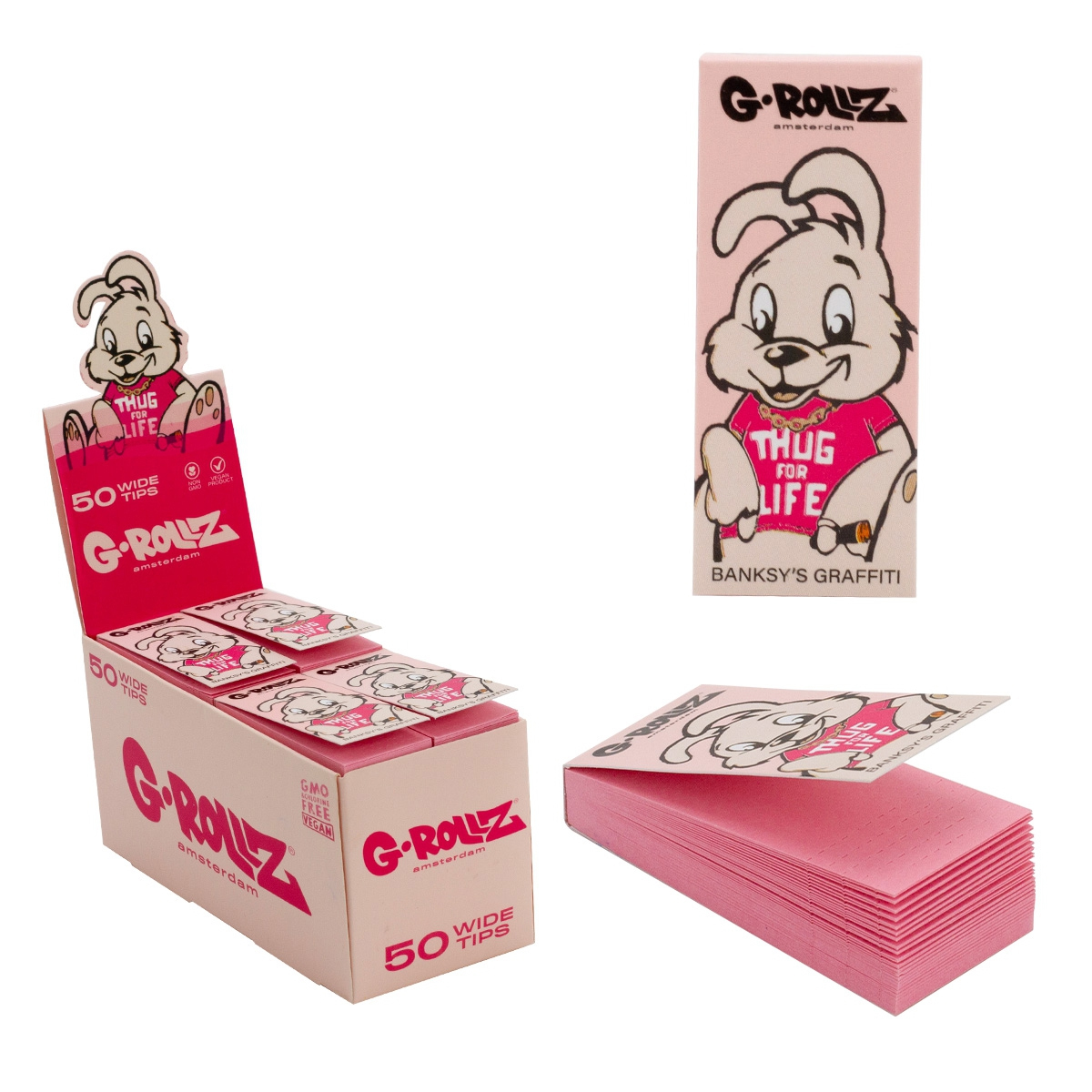 G-Rollz Banksy Thug Life Pink Filtres tips Présentoir – carton, format pro. Disponible chez GrowTech, livraison rapide en Suisse.