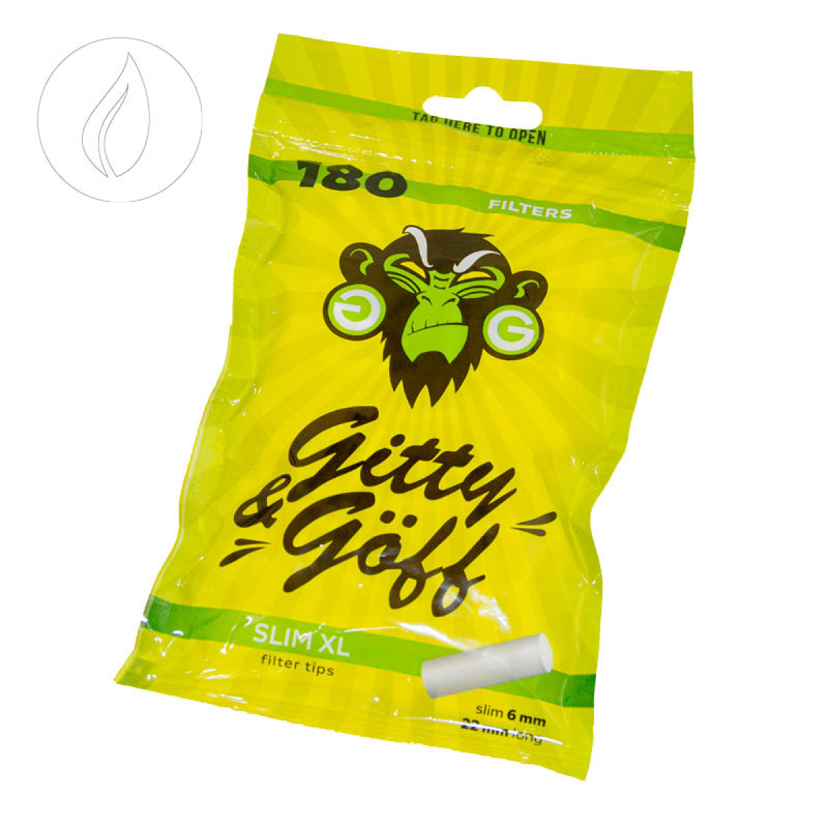 Gitty & Göff Slim XL Filtres tips 6mm – carton, slim. Disponible chez GrowTech, livraison rapide en Suisse.