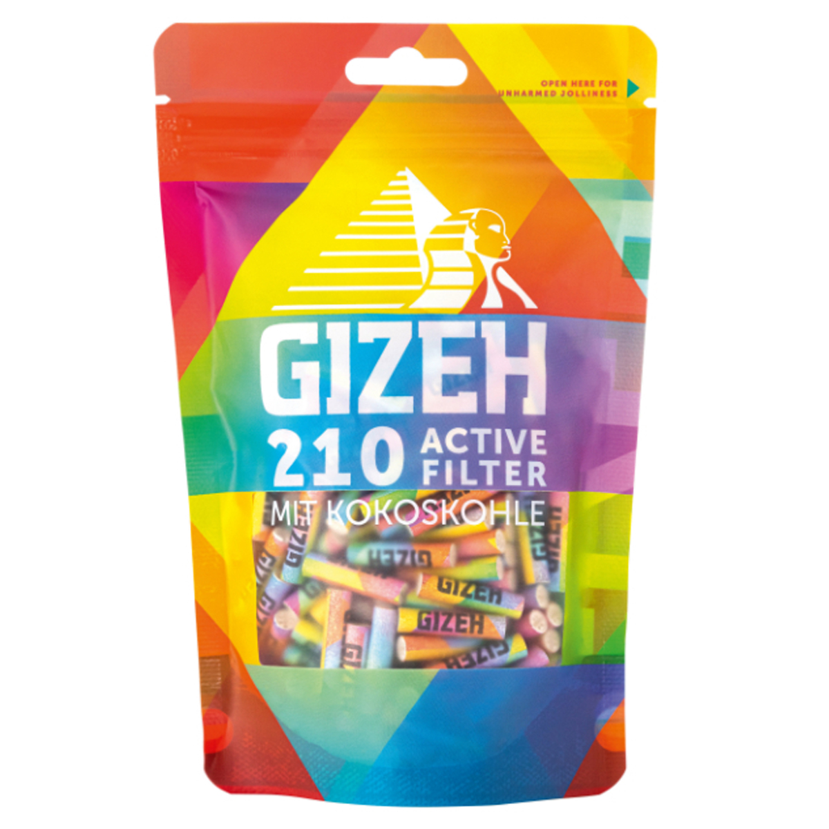 GIZEH Rainbow Active Filtre 6mm 210pcs – charbon actif. Disponible chez GrowTech, livraison rapide en Suisse.