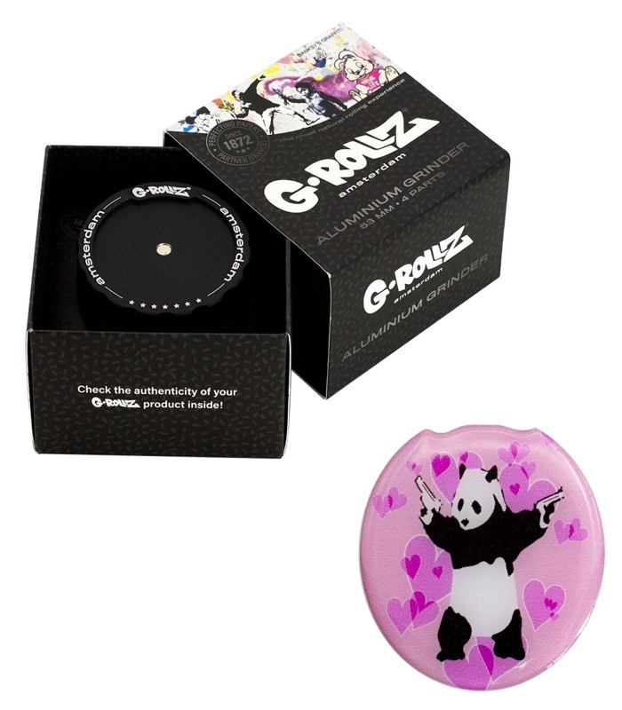 Grinder – G-Rollz Banksy Panda Gunnin’ 4-parts 53 mm — grinder en aluminium, 53mm. Livraison rapide en Suisse.