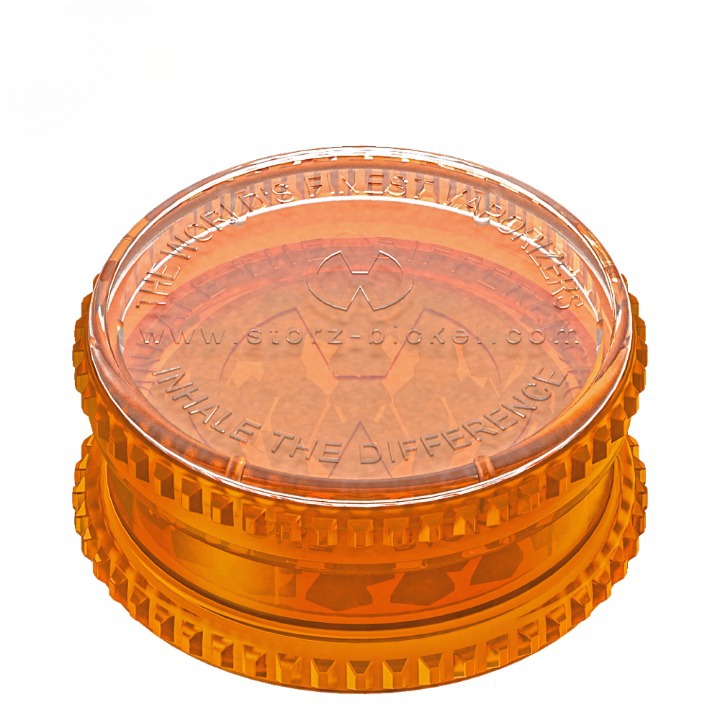Storz & Bickel, le fabricant allemand des vaporisateurs Volcano, Mighty et Crafty. Ce grinder en acrylique 3 parties est le même que celui fourni avec les vaporisateurs Volcano. Dents tranchantes, boîtier de rangement intégré, grip moletée. Le broyage produit une consistance très fine, idéale pour la vaporisation. Légèrement transparent pour voir la consistance du broyage en cours. Disponible en 55mm et 90mm (XL).