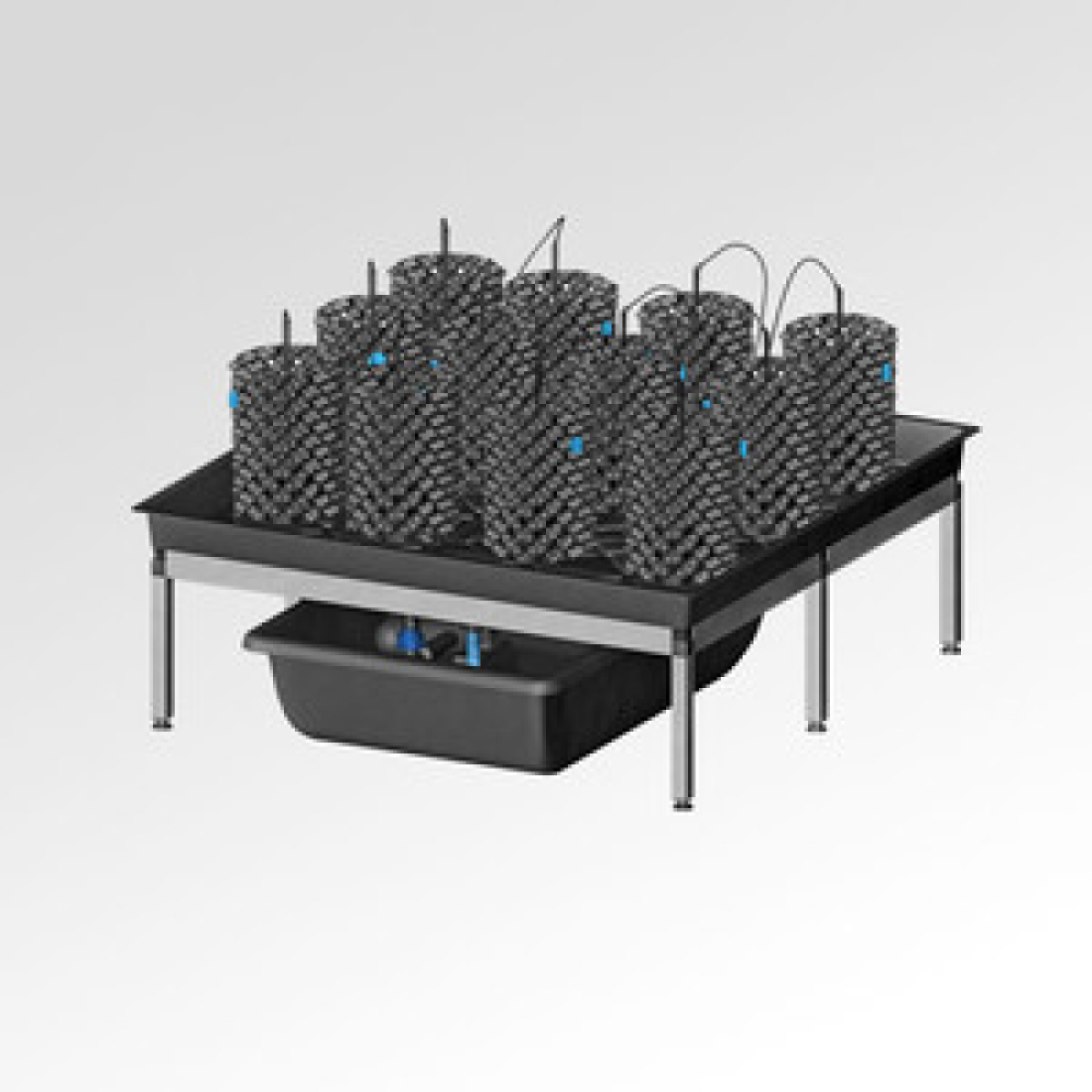 Système hydroponique Airpot GrowTOOL 1.0 avec 16 emplacements. Culture en pots Airpot avec irrigation automatique pour un développement racinaire optimal et des rendements maximaux.