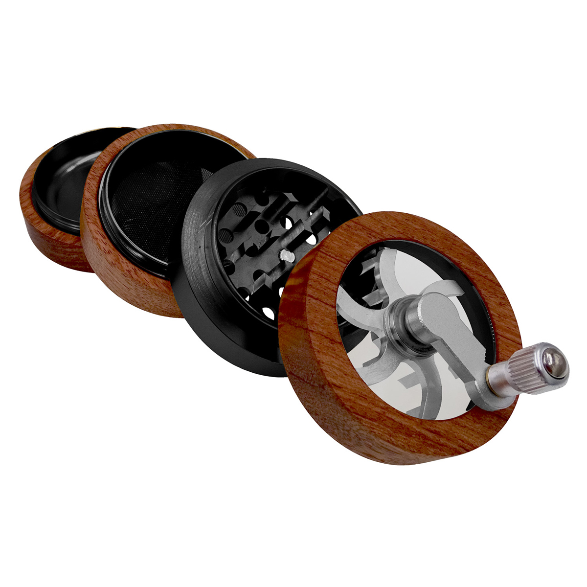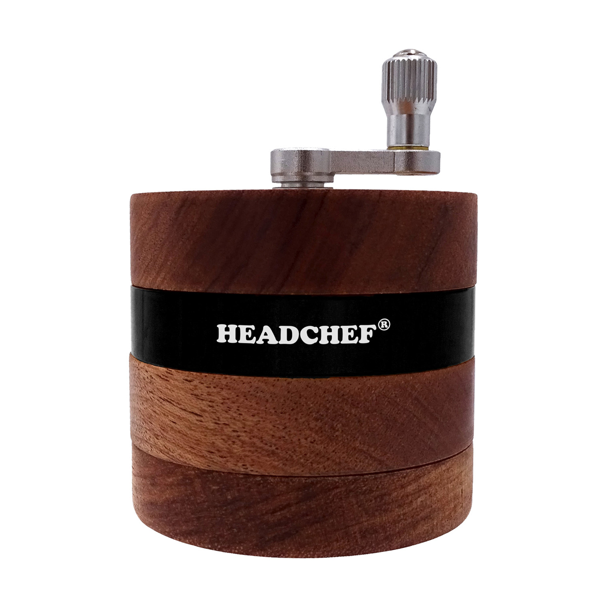 Le Headchef Woodsman combine une coque extérieure en bois véritable avec un intérieur en aluminium. Équipé d’une manivelle rotative 360° pour un broyage sans effort. 62mm de diamètre. 4 parties avec tamis.