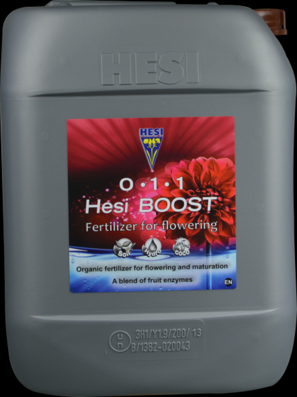 Le Hesi Boost est un activateur de floraison puissant compatible avec tous les substrats. Sa formulation unique à base d’extraits de fruits et de sucres naturels stimule la production florale et intensifie les arômes. Utilisé en complément de l’engrais de base, il pousse les plantes à exprimer tout leur potentiel en floraison.