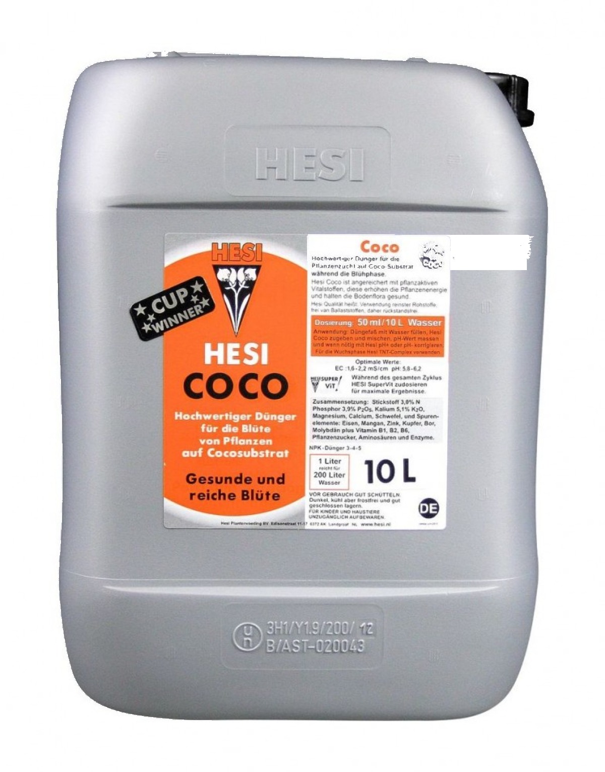 Engrais complet mono-composant Hesi spécifiquement formulé pour la culture en coco. Une seule bouteille couvre croissance et floraison grâce à un ratio NPK équilibré enrichi en vitamines et oligo-éléments.