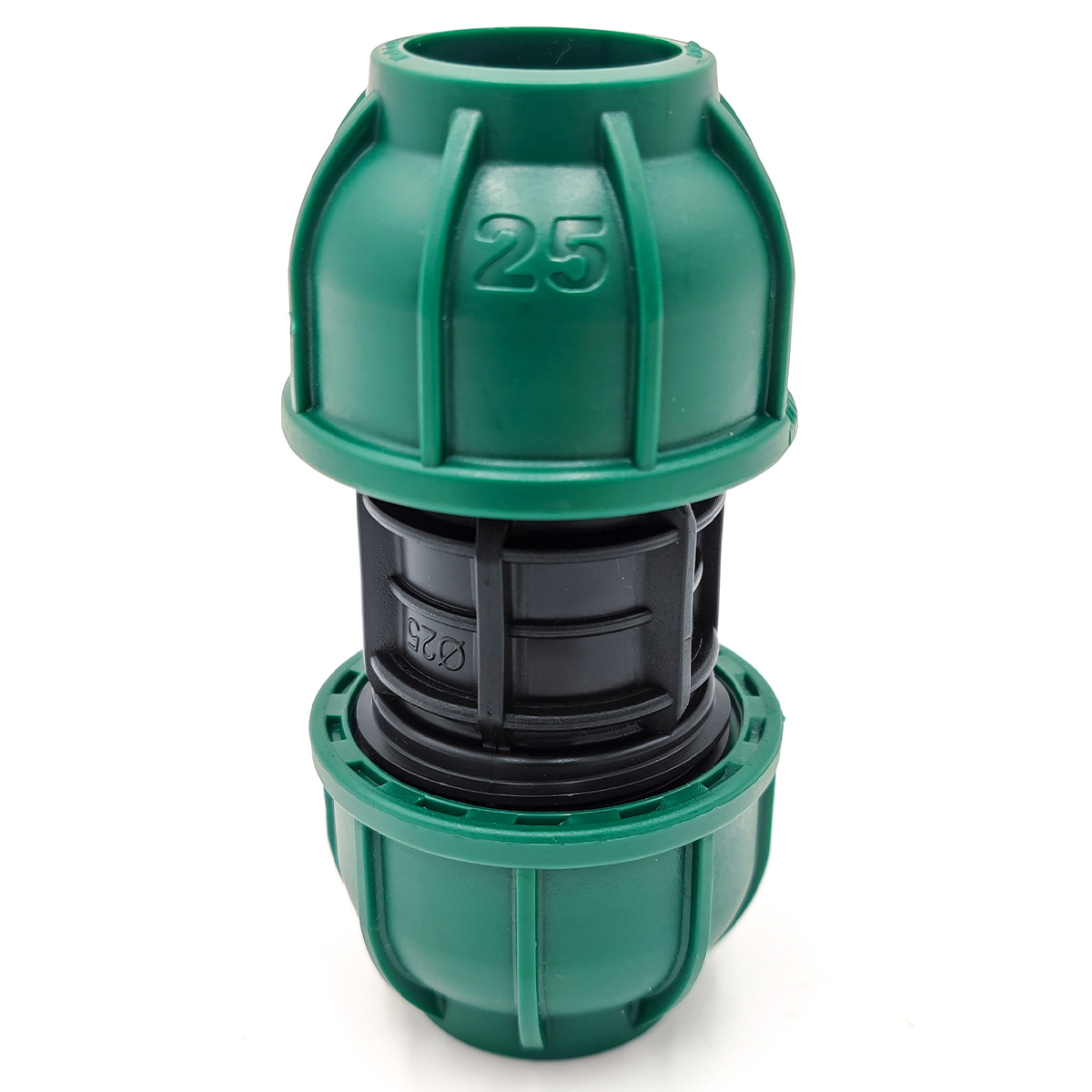 Raccord droit Irritec PP Green 25mm. Prolongation et réparation de tuyaux PE 25mm par compression.