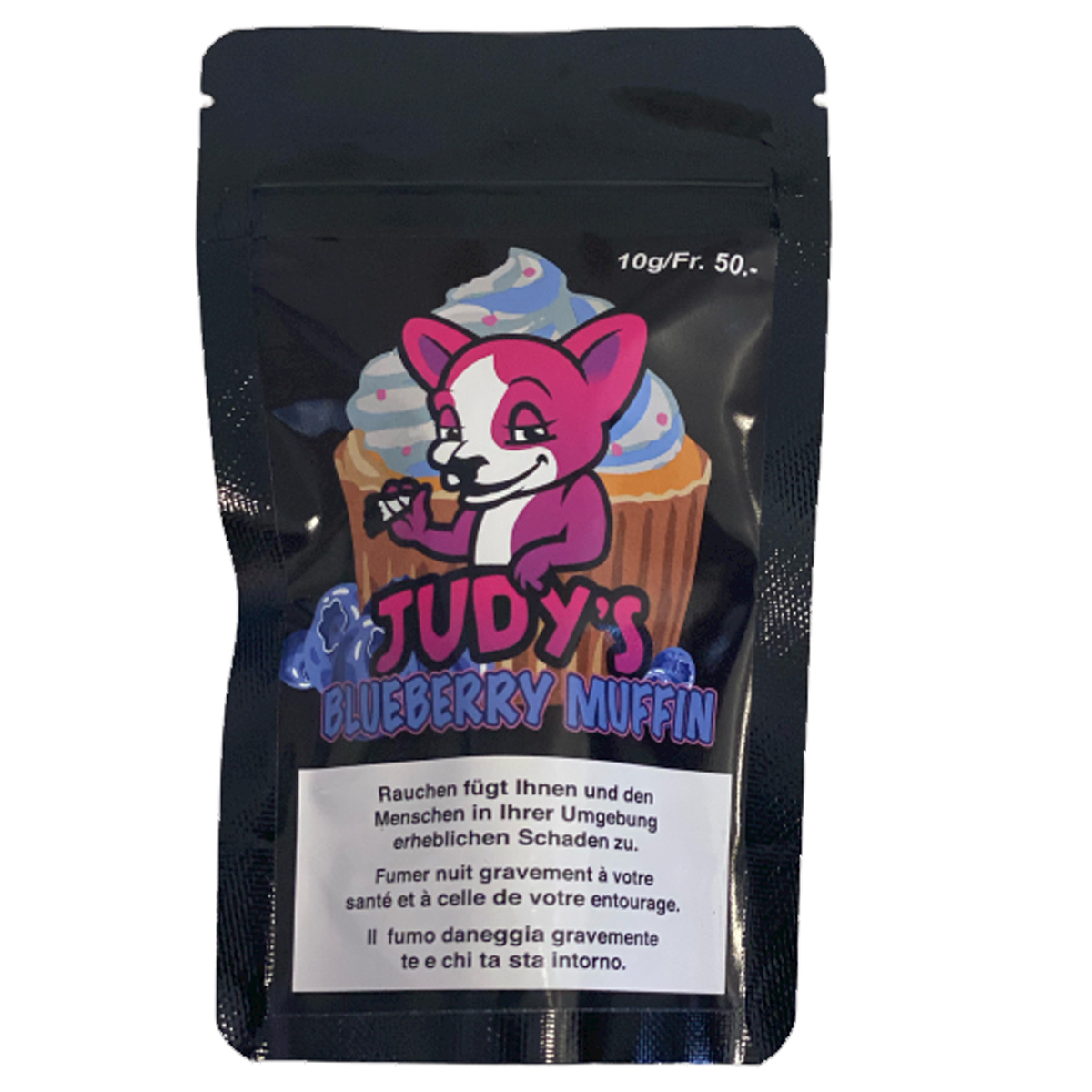 Blueberry Muffin Judy’s 10g : fleur CBD indoor aux arômes de muffin myrtille et pâtisserie chaude. Un profil gourmand unique qui transforme chaque session en moment de plaisir sucré.