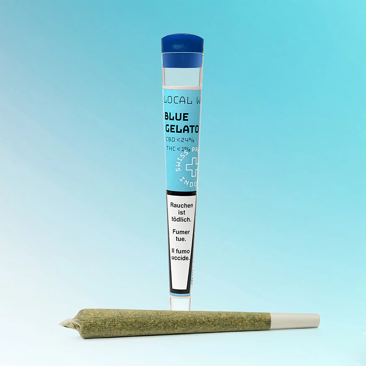 Joint CBD pré-roulé Blue Gelato par Local Weed — myrtille et vanille, artisanal suisse, 5.90 CHF.