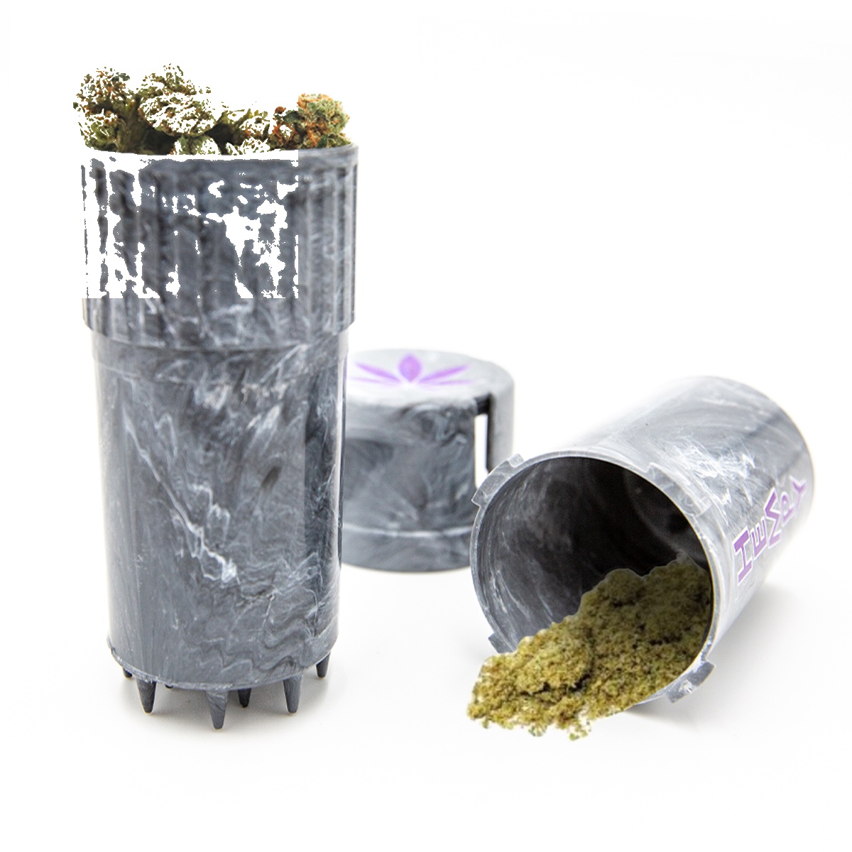 Le Medtainer est le premier conteneur breveté hermétique avec grinder intégré. Étanche à l’air, à l’eau et aux odeurs. En plastique FDA de grade médical, non toxique. Le couvercle sert de broyeur avec un système Push-Twist à 4 branches, facile à utiliser. Disponible en 20 Dram (jusqu’à 5g, 9x4cm) et 40 Dram XL (8-10g, 10.5×5.5cm). Conçu à l’origine pour la préparation de médicaments, adopté aussi pour le thé et les herbes culinaires.