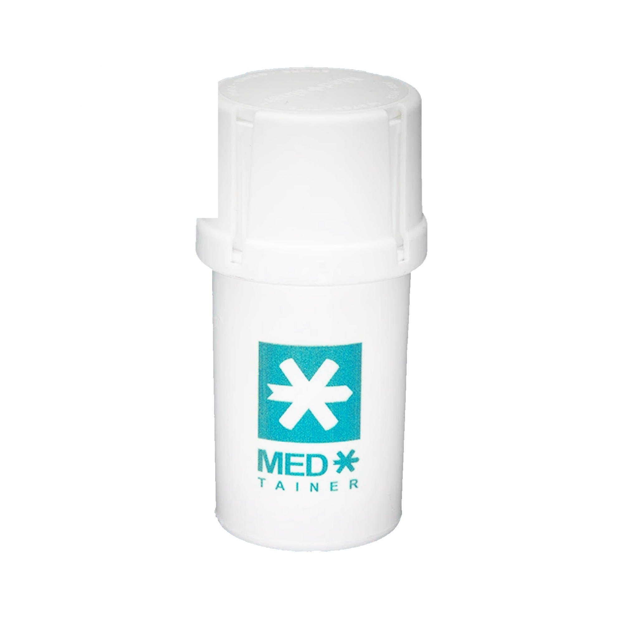 Le Medtainer est le premier conteneur breveté hermétique avec grinder intégré. Étanche à l’air, à l’eau et aux odeurs. En plastique FDA de grade médical, non toxique. Le couvercle sert de broyeur avec un système Push-Twist à 4 branches, facile à utiliser. Disponible en 20 Dram (jusqu’à 5g, 9x4cm) et 40 Dram XL (8-10g, 10.5×5.5cm). Conçu à l’origine pour la préparation de médicaments, adopté aussi pour le thé et les herbes culinaires.