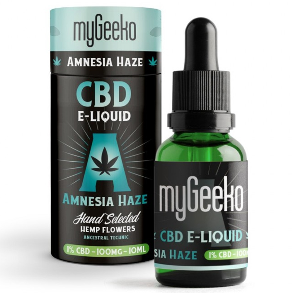 E-Liquide CBD myGeeko Amnesia Haze 10ml 100mg. Terpenes Amnesia Haze.