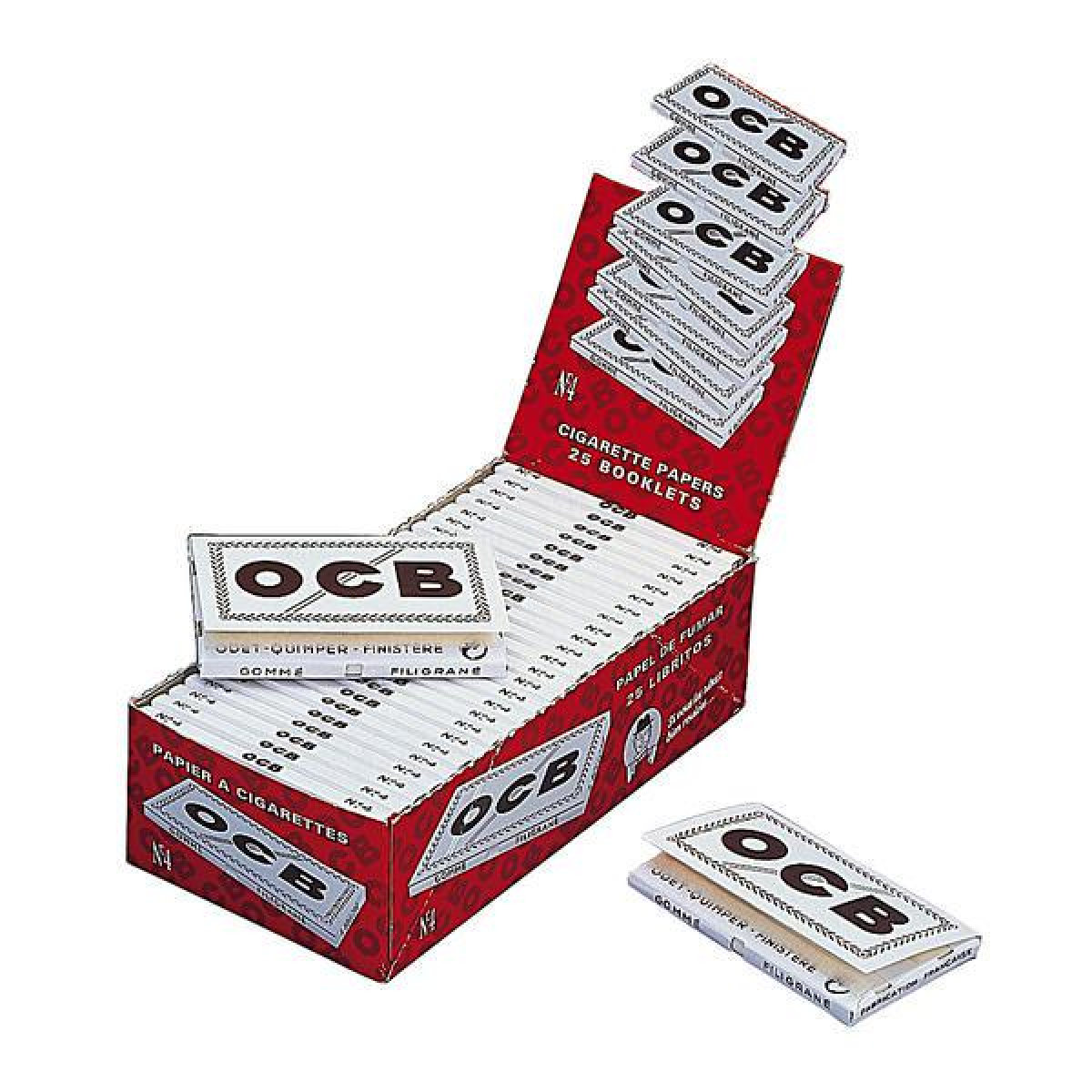 Boîte de 25 cahiers OCB White Nr. 4. OCB est la marque française légendaire de papier à rouler, fondée en 1918 à Perpignan. Avec plus d’un siècle d’expertise, OCB est synonyme de qualité premium et d’innovation dans le monde du papier à rouler.