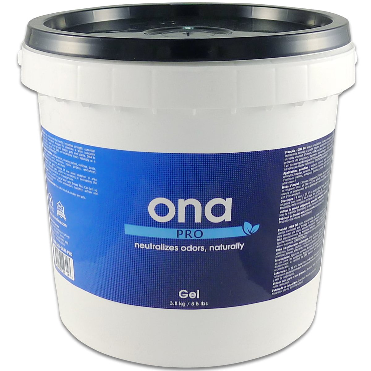 ONA Gel Pro 4L (3.8 kg net) – neutralisateur parfum neutre. Seau Ø210×H190mm, 4.1kg. Libération contrôlée.